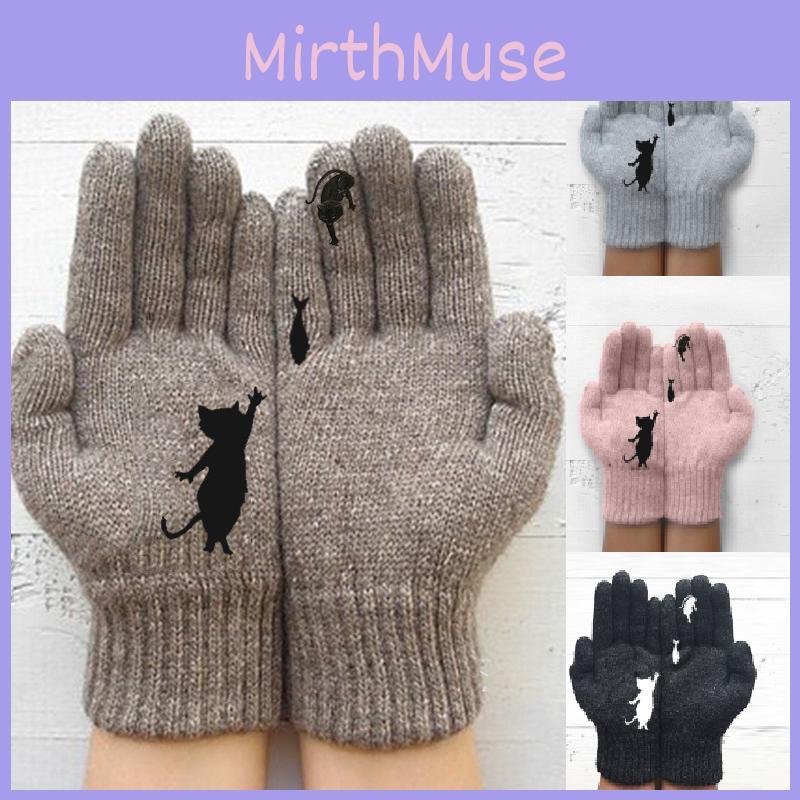 Женские модные вязаные перчатки с принтом кошки и рыбы, теплые варежки с полными пальцами — купить товар онлайн с бесплатной доставкой по всему миру!