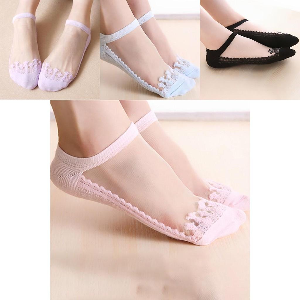 Женские Цветные Сексуальные Ультратонкие Эластичные Шелковистые Короткие Шелковые Кружевные Невидимые Носки Для Легкой Элегантности