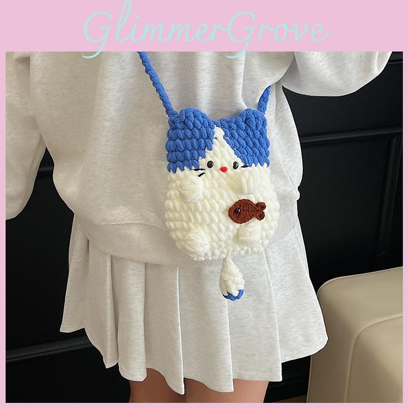 Cute Girl Wool Knit Crossbody Bag With Breathable Animal Pattern For Daily Use