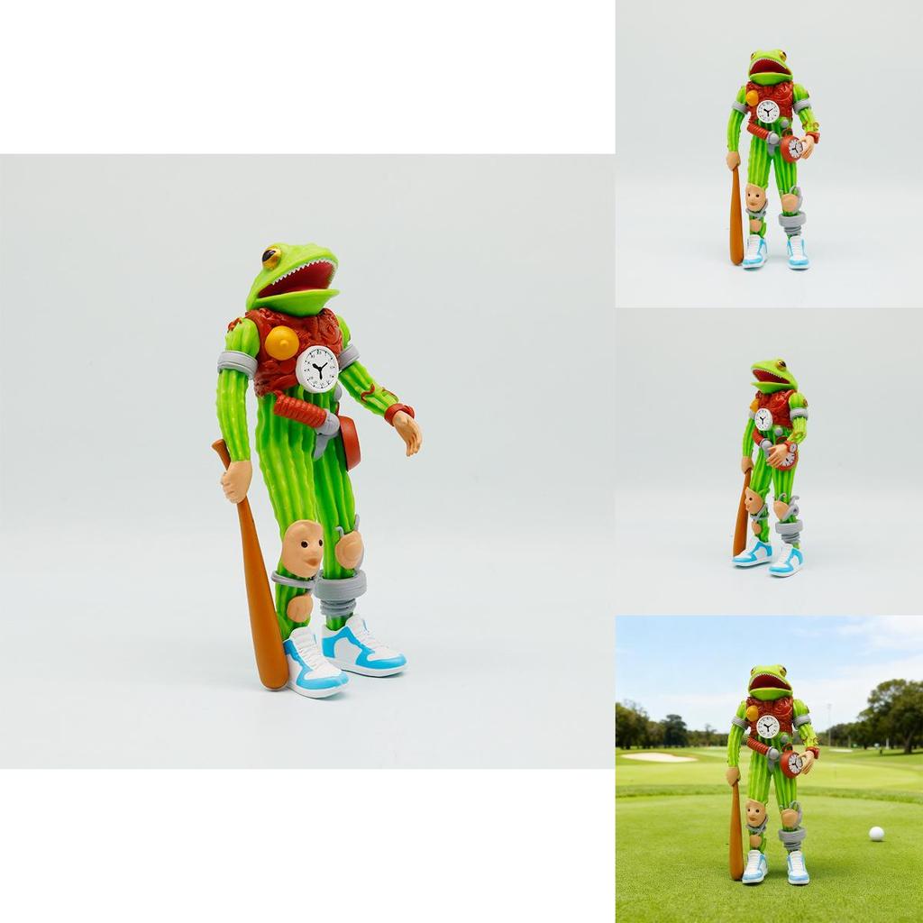 Эта фигурка часов-кактуса-лягушки сочетает в себе игривый дизайн и прочную ПВХ-конструкцию. Она представляет собой причудливое слияние кактуса, лягушки и гуманоидного персонажа, что делает ее подходящей в качестве декоративного коллекционного предмета или детской игрушки.. Его компактный размер позволяет легко размещать его на полках или столах.. Легко чистится влажной тканью, идеально подходит для украшения детских комнат или тематических игровых зон.