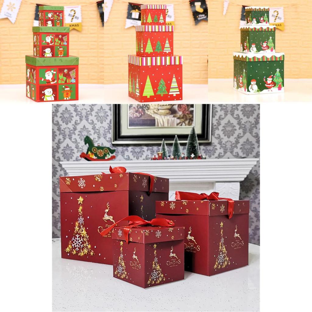Премиальная большая подарочная коробка на Рождество с крышкой и лентой, идеально подходит для праздничного дарения**