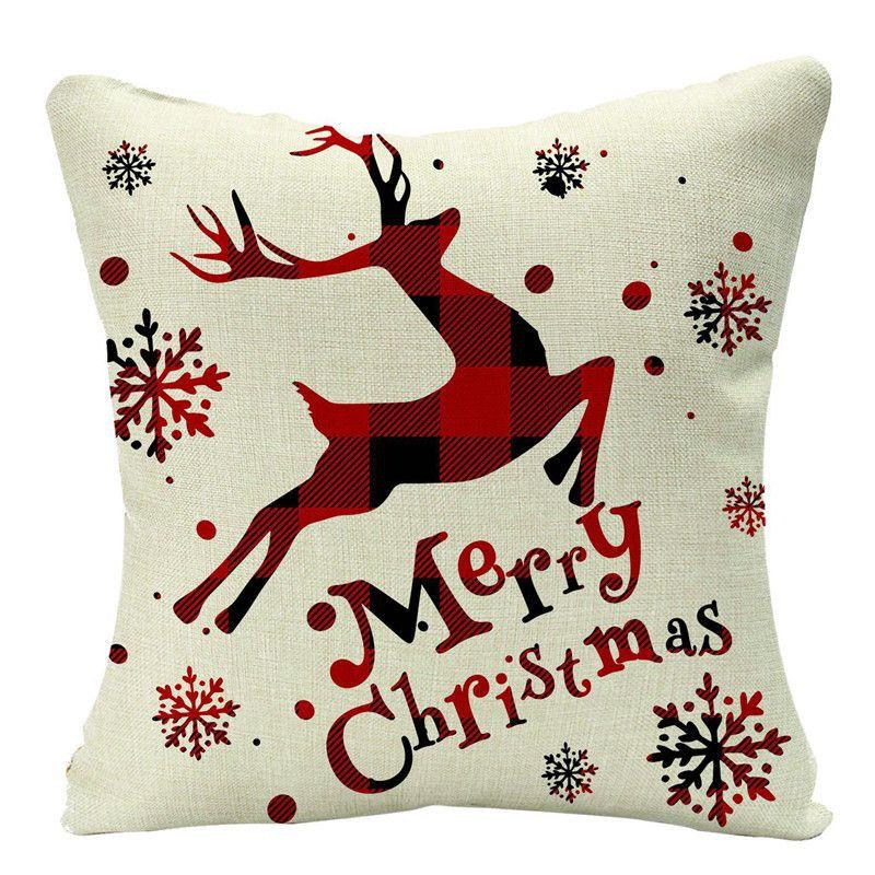 Festive Christmas Cushion Cover Featuring Adorable Reindeer And Snowflakes Design