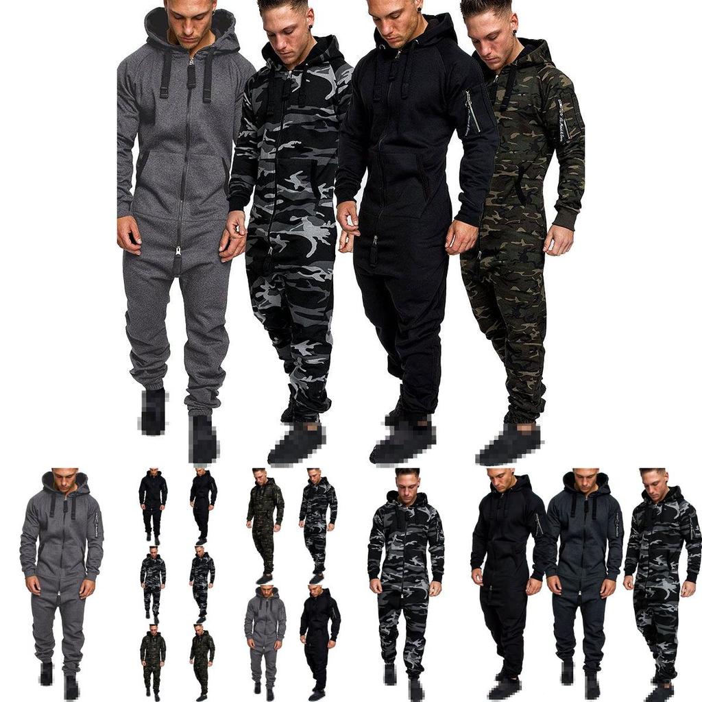 Мужской камуфляжный комбинезон с капюшоном и застежкой-молнией, идеально подходящий для повседневной носки