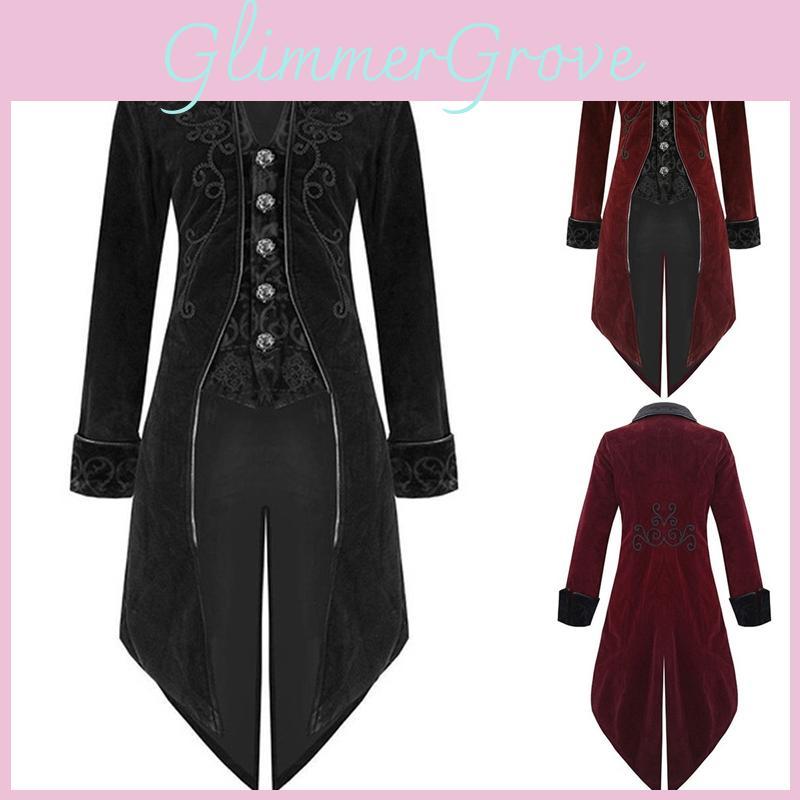 Винтажный мужской фрак элегантного черного цвета для готических стимпанк костюмированных вечеринок