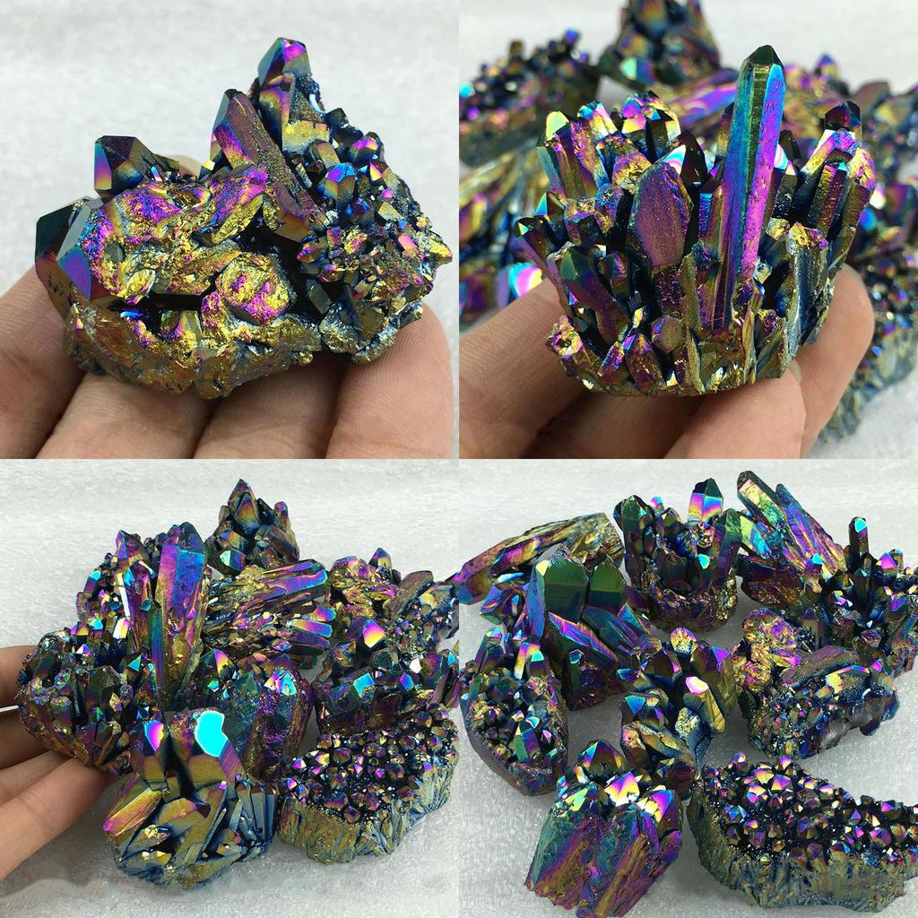 Потрясающий кластер натурального кварцевого кристалла с радужным титановым покрытием для исцеления и домашнего декора
