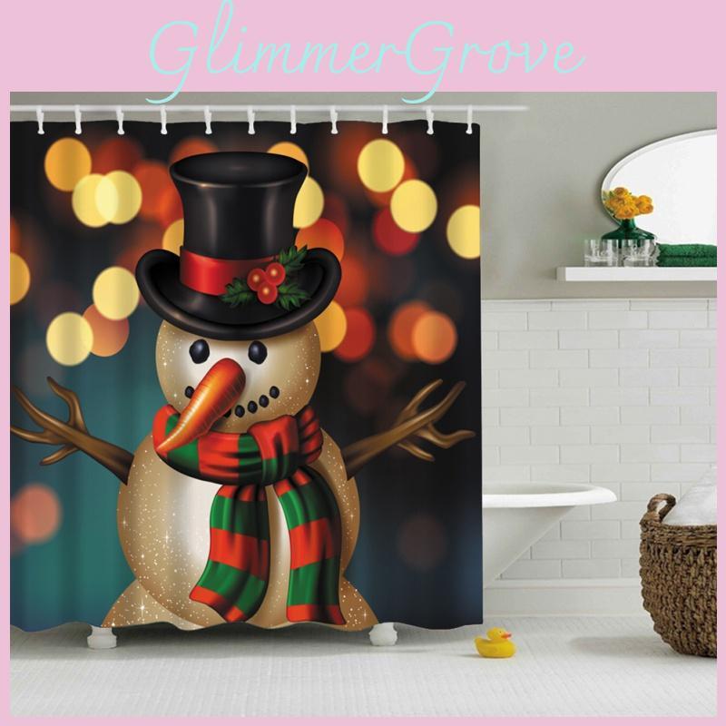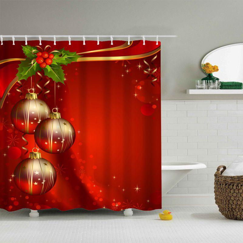 Потрясающая Рождественская Домашняя Шторка для Душа из Водонепроницаемого Полиэстера с 12 Крючками для Праздничного Декора