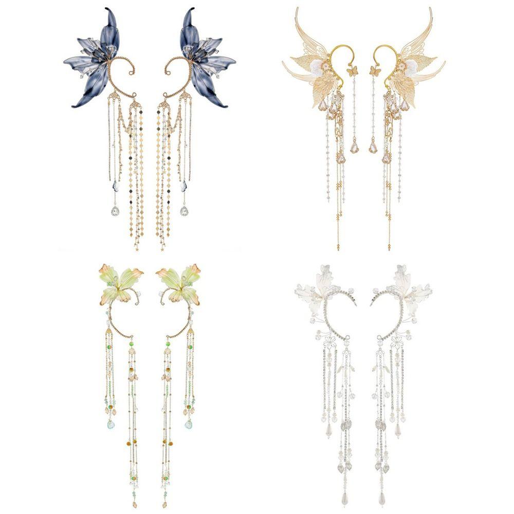 Очаровательные серьги-каффы в виде эльфа-русалки: Эти изысканные серьги-каффы в стиле эльфов имеют потрясающий дизайн в виде крыльев феи, украшенных сказочными плавниками русалки или крыльями бабочки, что позволит вам воплотить в себе сущность феи или эльфа.