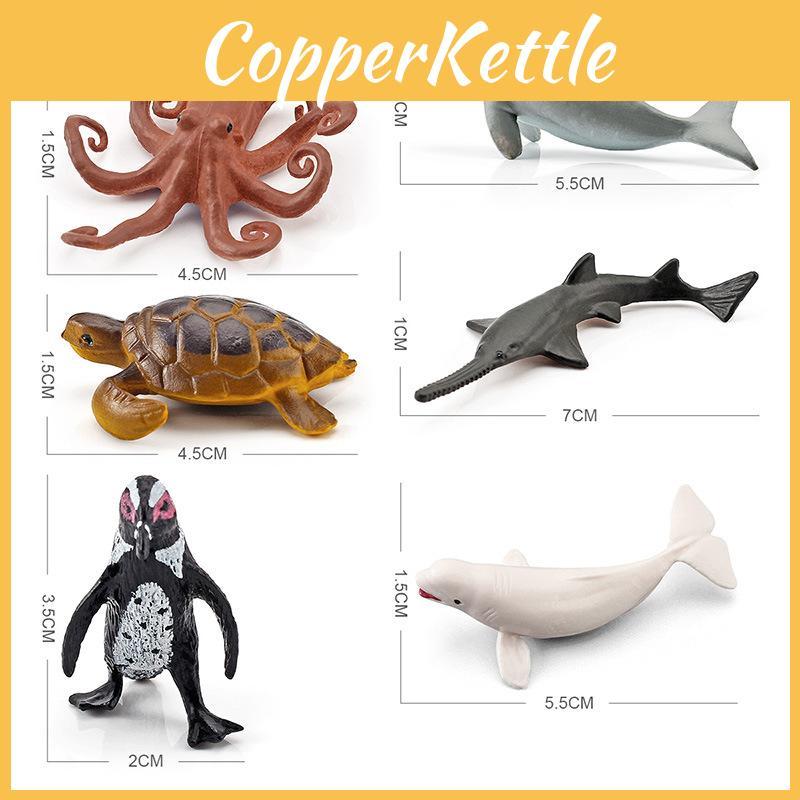 This mini marine animal model set features realistic depictions of various ocean creatures, including a narwhal, bowhead whale, and penguin, crafted from durable PVC material. Each figure measures approximately 3 to 6 inches, showcasing intricate detailing for display or educational use. Ideal for marine enthusiasts, classroom decorations, or ocean-themed decor, these static models require gentle wiping with a damp cloth for cleaning.