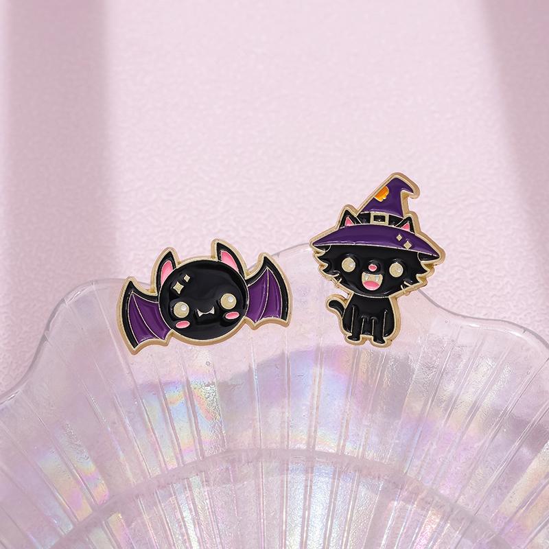 Милые эмалевые значки кота-летучей мыши, на заказ, животные на Хэллоуин, брошь на лацкан, панк, готическая бижутерия, подарок для детей, друзей