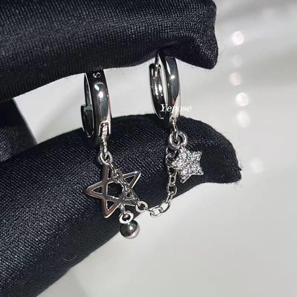 Звезда Двойная Цепочка для Пирсинга Ушей из Нержавеющей Стали Крутые Серьги-Гвоздики для Кости Женские