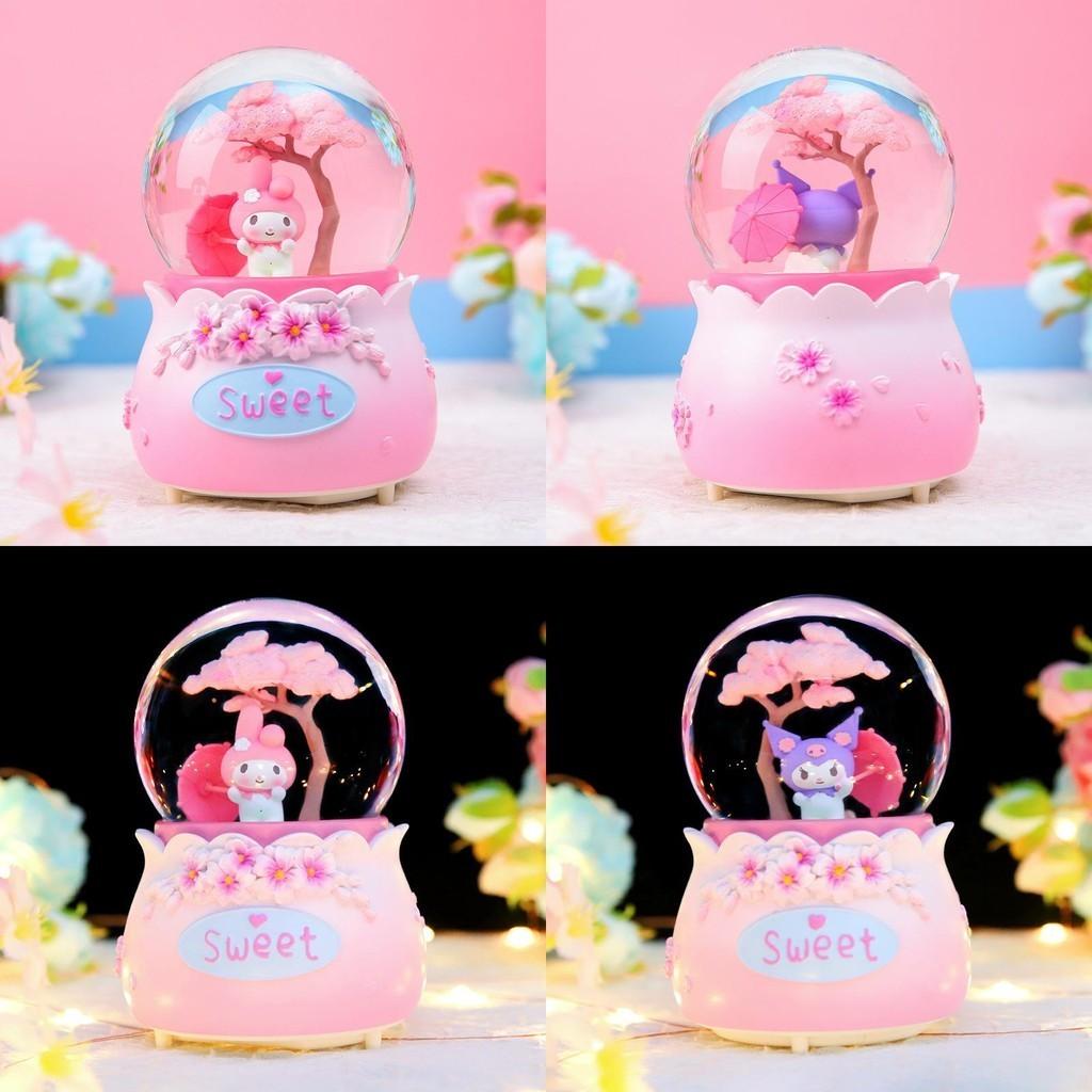 Cute Glowing Eight-tone Music Box Cherry Blossom Tree Rotating Crystal Ball Desk Decoration Gift Pink Bunny