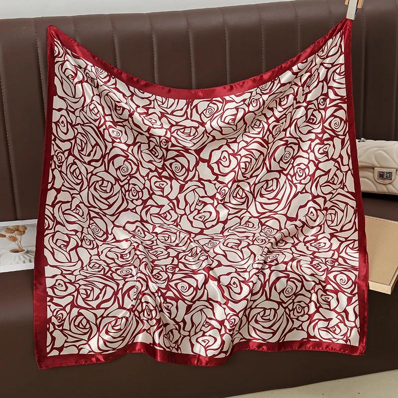 90*90 см Квадратный платок с принтом Розы на линии, полиэстер, Хиджаб для мусульманской женщины, Шали, Модные элегантные накидки для леди, Исламский тюрбан, Типпет