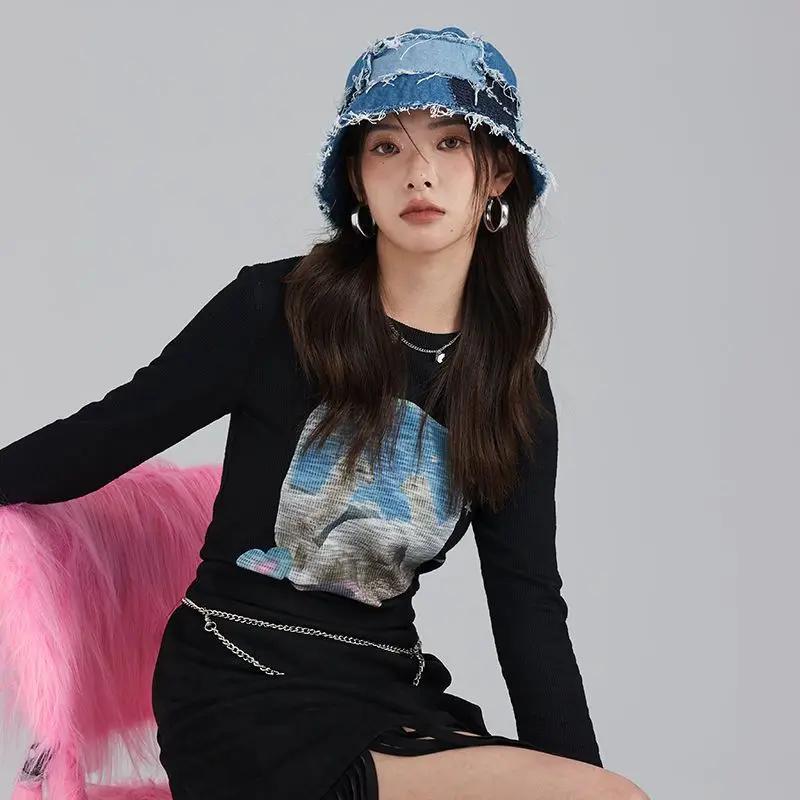 Японская нишевая дизайнерская шляпа-ведро с маленьким лицом в стиле ретро-нищенки, контрастные цвета, джинсовые шапки-тазики для женщин