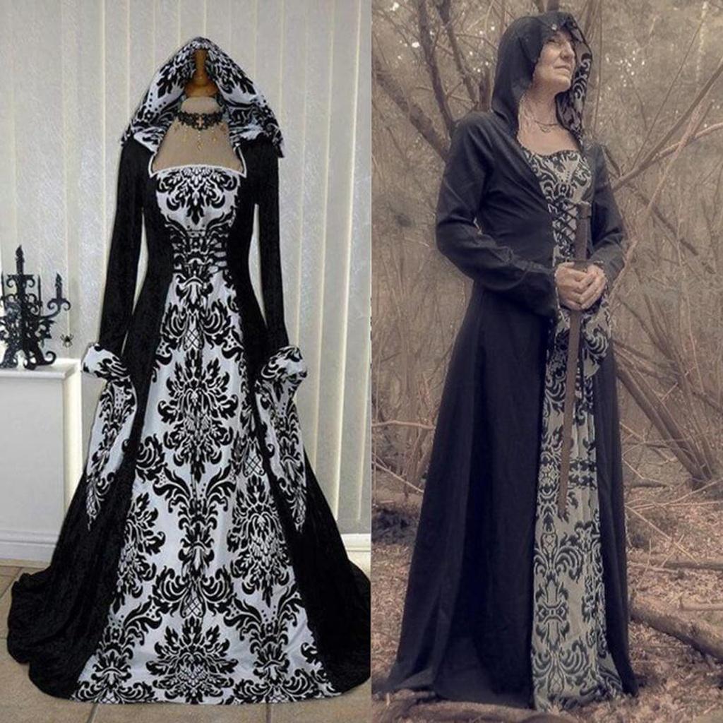 Очаровательное винтажное готическое женское платье макси, идеально подходящее для Хэллоуина и косплей-мероприятий