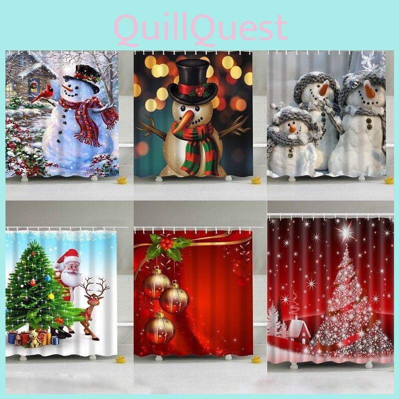 Потрясающая Рождественская Домашняя Шторка для Душа из Водонепроницаемого Полиэстера с 12 Крючками для Праздничного Декора