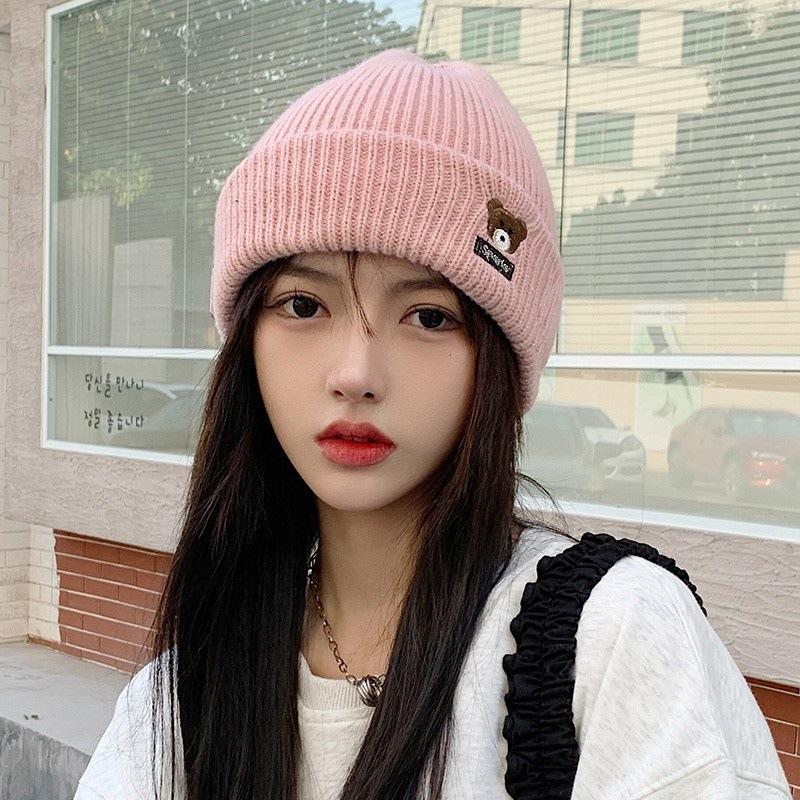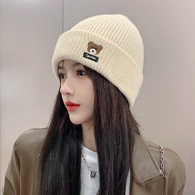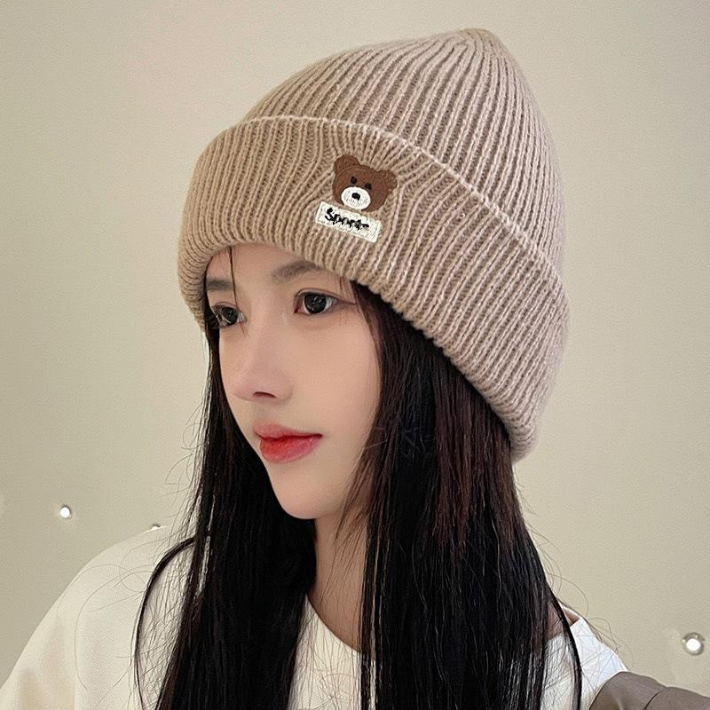 Осень и Зима Студенты Все-в-одном Защита Ушей Милая Шапка Вязаная с Медведем и Буквами