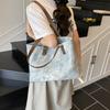 Large Capacity Canvas Tote Bag For Women With Stylish Streetwear Design In Gray Brown And Blue