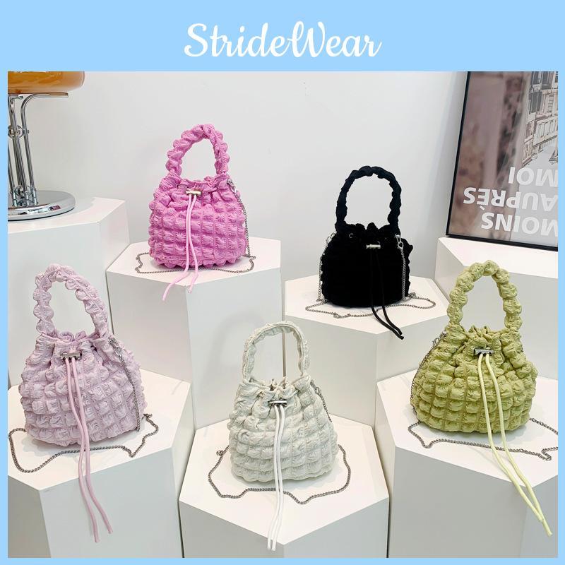 New Folded Bucket Bag Street Fashion Canvas Shoulder Bag Soft Texture Large Capacity Commuter Casual Puff Cloud Bag