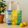 Generously sized for daily life, the rectangular body and 12 cm gusset create easy space for produce, books, a scarf, and a water bottle. It folds flat when not in use, tucks into a suitcase for travel, and moves with you from market mornings to studio hours to unhurried walks. Resist-dyeing is a traditional technique found in many cultures, where areas of cloth are protected from dye to form motifs; the result here is a calm, flower-like center that brings a gentle point of focus to the design.