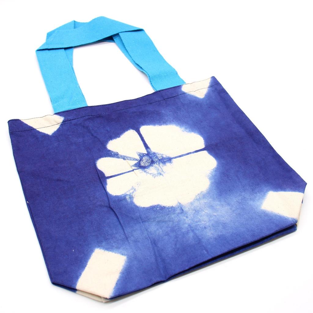 Woven cotton meets quiet pattern: a dark blue ground with a softly resist-dyed white flower, easy in the hand and gentle on the shoulder. This is a functional yet soulful companion — a carryall that turns errands, workdays, and small journeys into an effortless expression of mindful living. 🌿