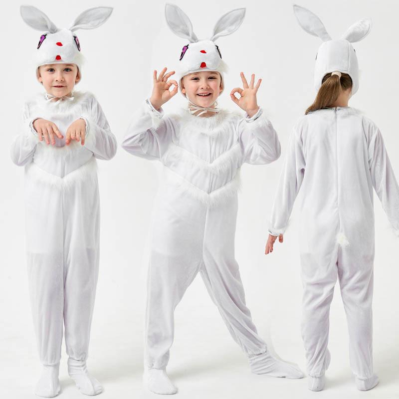 Очаровательный детский костюм белого кролика для Хэллоуина и косплея, унисекс комбинезон