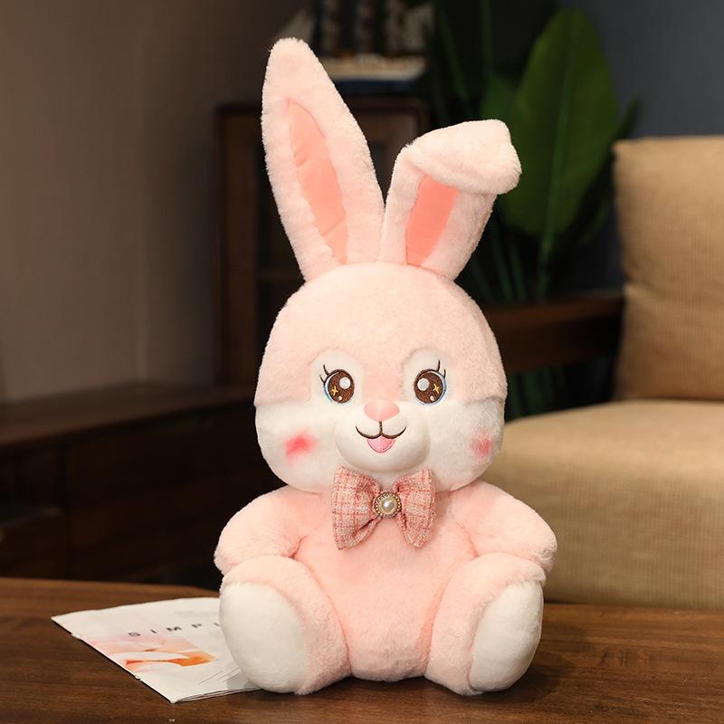 Эта милая маленькая плюшевая кукла-кролик станет идеальным компаньоном для любого ребенка или взрослого, кто любит мягкие и приятные на ощупь игрушки.. Сделанная из ультрамягкой короткой плюшевой ткани и наполненная высококачественным ПП-хлопком, эта кукла-кролик невероятно мягкая и приятная на ощупь.. Эта плюшевая игрушка с ее очаровательным дизайном и трехцветным галстуком-бабочкой обязательно порадует как детей, так и взрослых.. И с тремя очаровательными цветами на выбор - розовым, фиолетовым и белым - вы обязательно найдете идеальный вариант, соответствующий вашей личности или декору.. Ищете ли вы милый и приятный на ощупь подарок для ребенка или просто хотите порадовать себя новой плюшевой игрушкой, эта трехцветная плюшевая кукла-кролик с галстуком - отличный выбор.