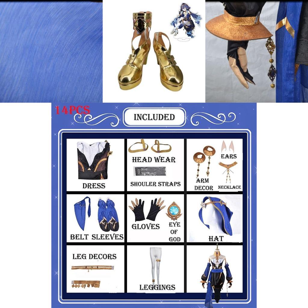 (Включая:1 * платье +2 * головные уборы + 2 * плечевые ремни + 2 * декоры рук + 2 * эльфийские уши + 1 * ожерелье + 1 * пояс + 2 * рукава + 1 * пара перчаток + 1 * шляпа + 2 * декор ног + 1 * леггинсы + 1 * глаз бога)