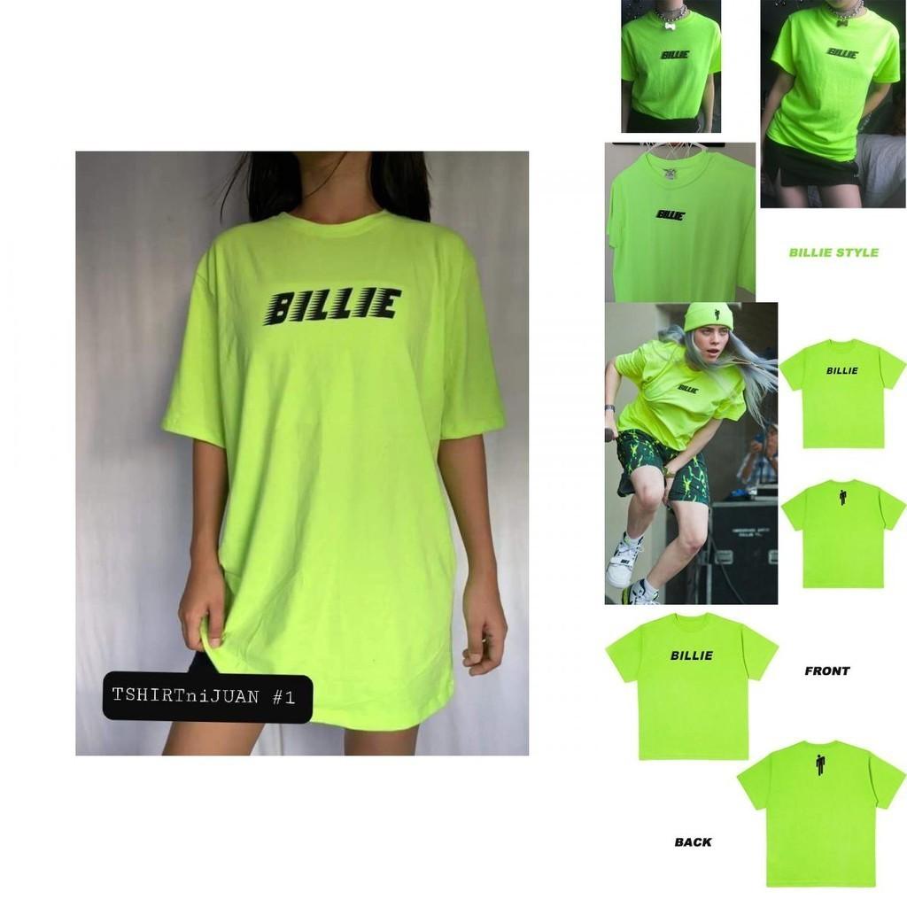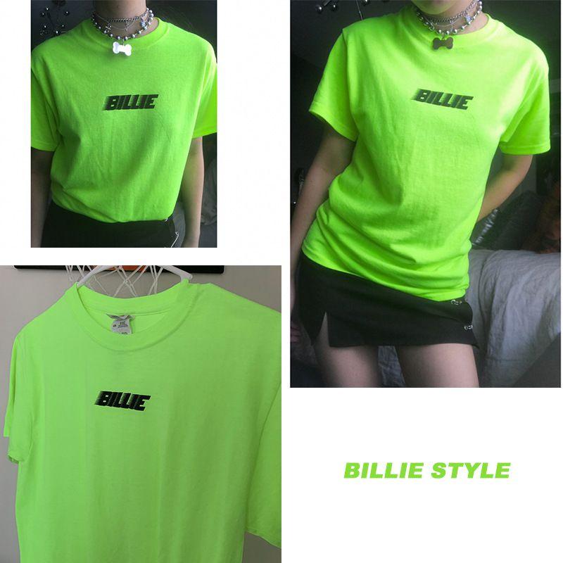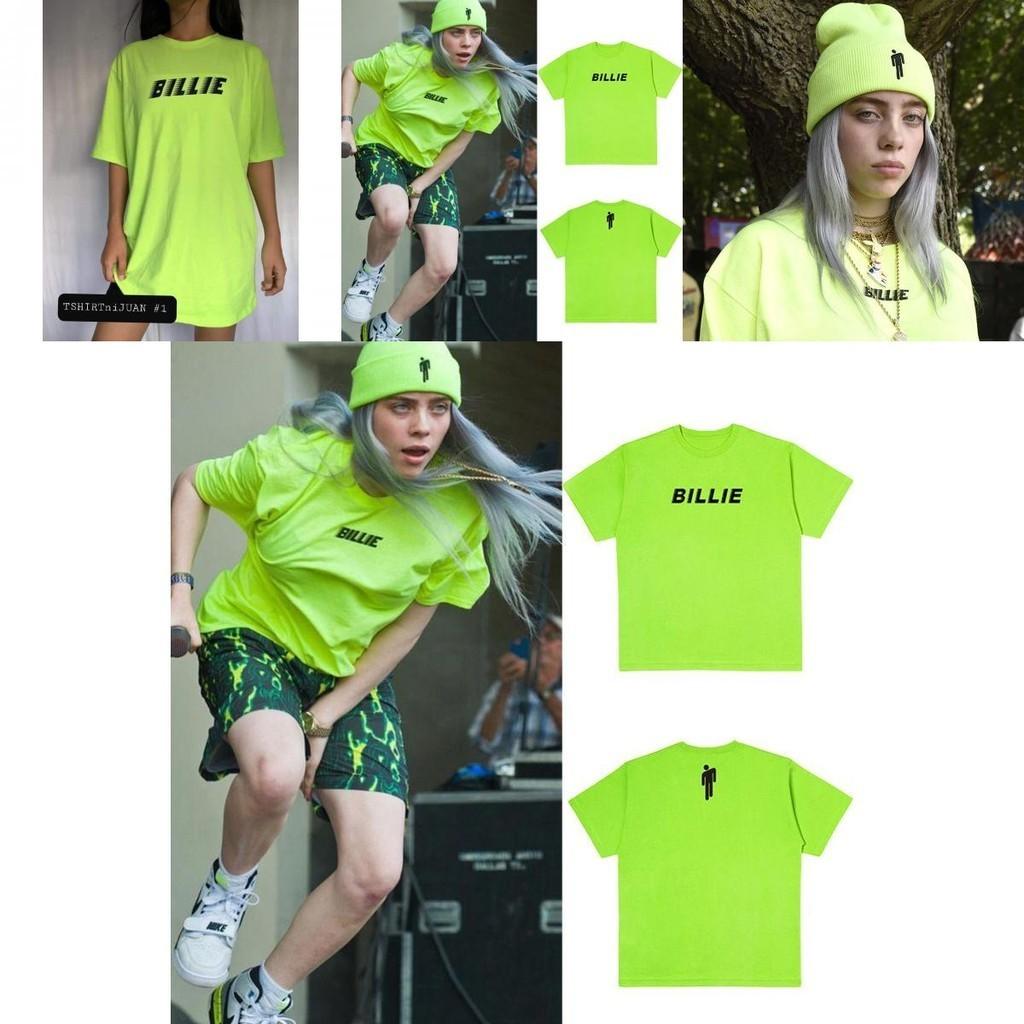 Женская футболка с принтом Билли Айлиш, с коротким рукавом и круглым вырезом, летний топ, флуоресцентно-зеленый
