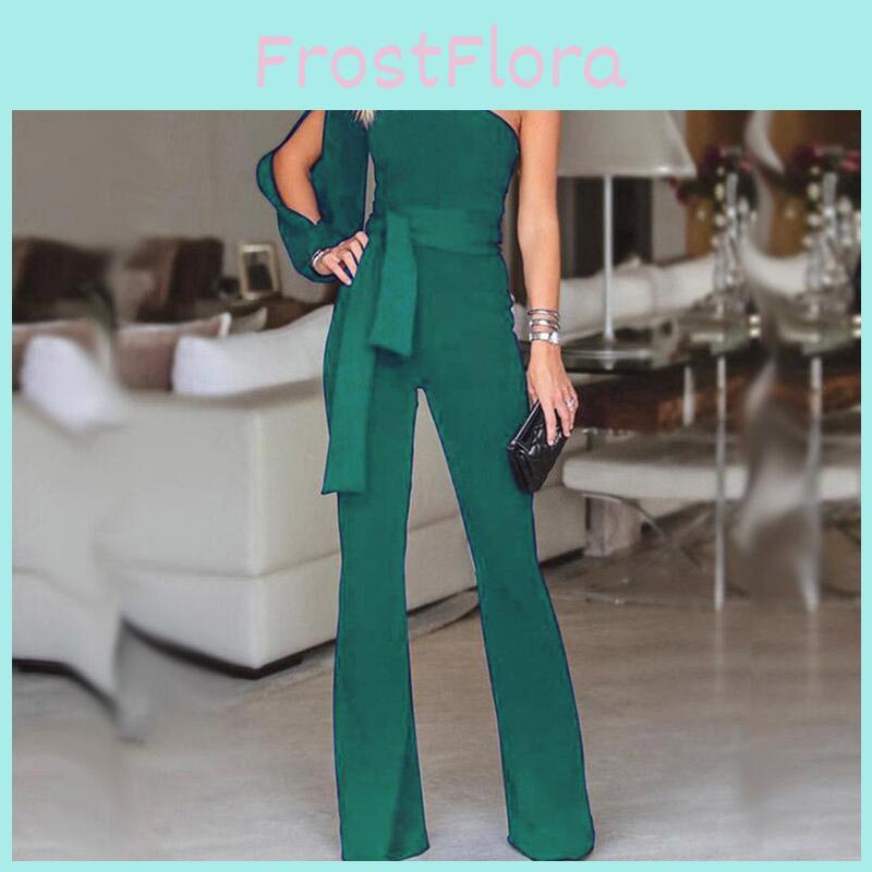 Женщины Завязанная талия Расклешенные комбинезоны Мода Одно плечо Сексуальные комбинезоны Комбинезоны