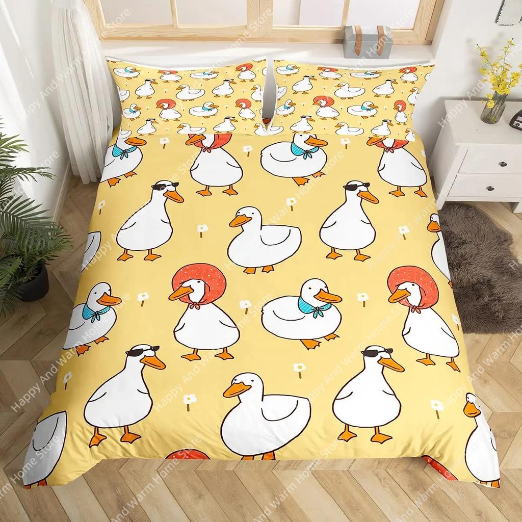 Милый пододеяльник с изображением утки King Queen и белого гуся, комплект постельного белья с изображением забавного фермерского животного, чехол из полиэстера