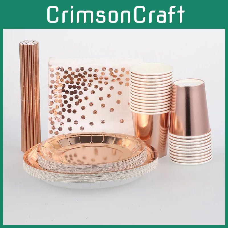 Потрясающая одноразовая посуда с тиснением розовым золотом для свадеб и вечеринок в честь рождения ребенка
