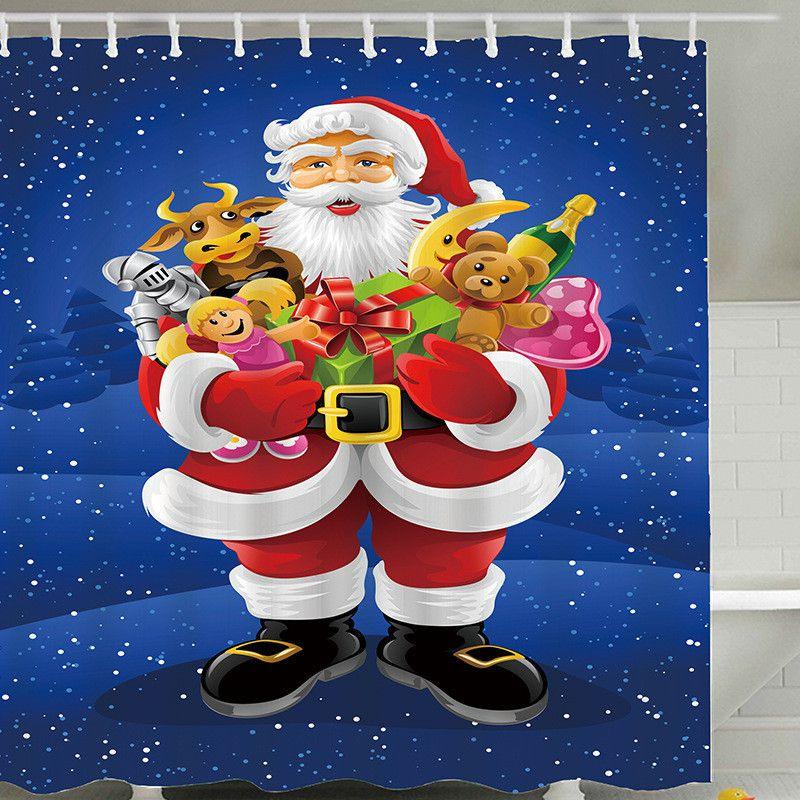 Яркая водонепроницаемая рождественская шторка для душа с Санта-Клаусом и снеговиком для яркого праздничного декора