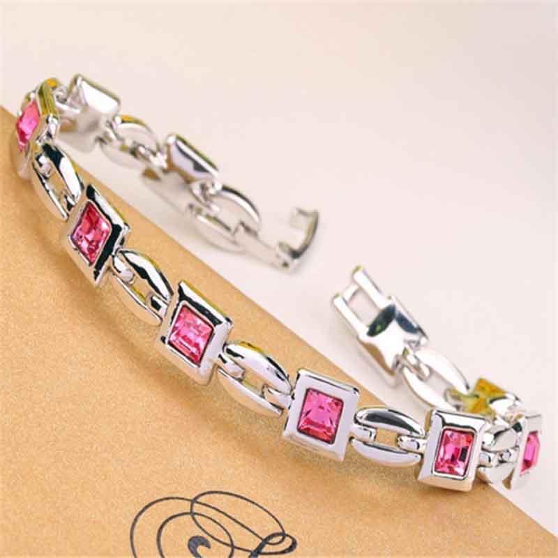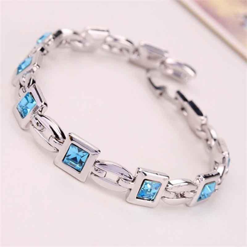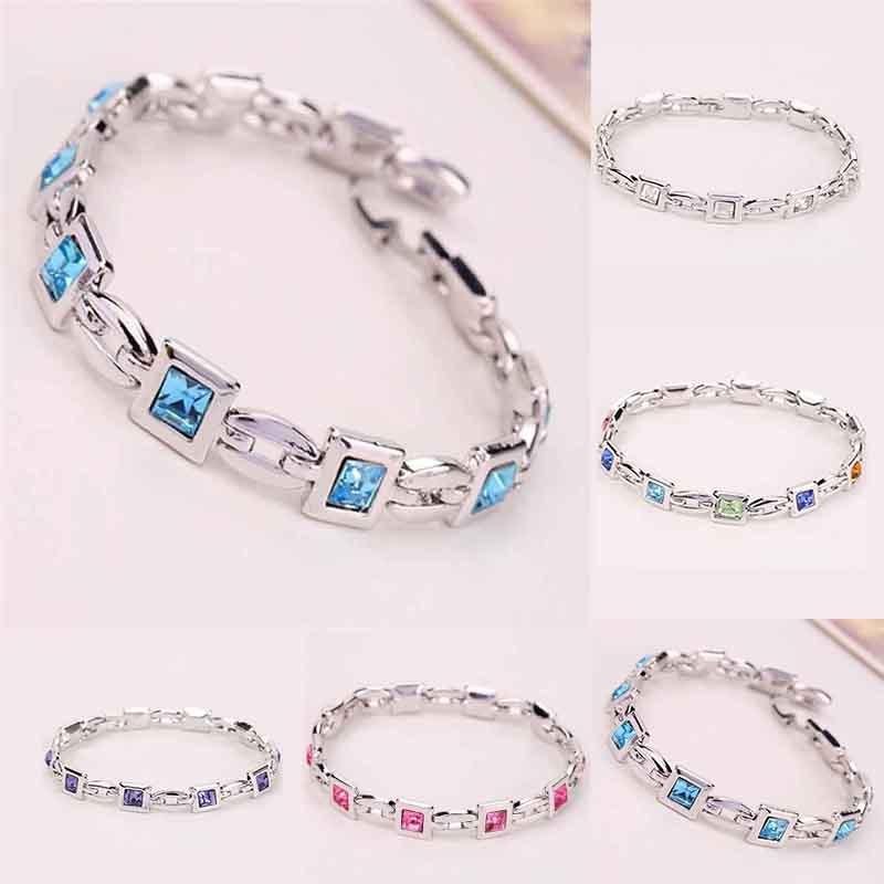 Красиво выполненная модная бижутерия с серебряным покрытием, огранка 'принцесса', элегантный хрустальный браслет-шарм для девочки