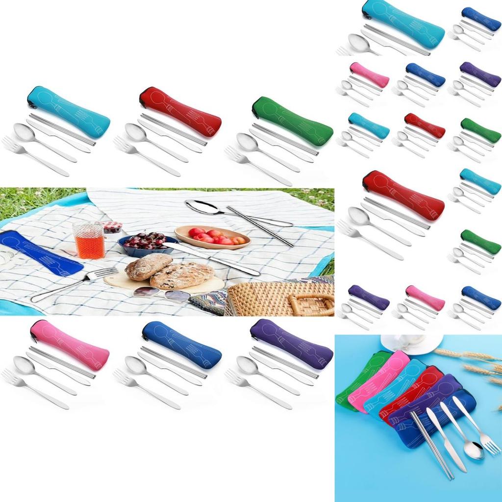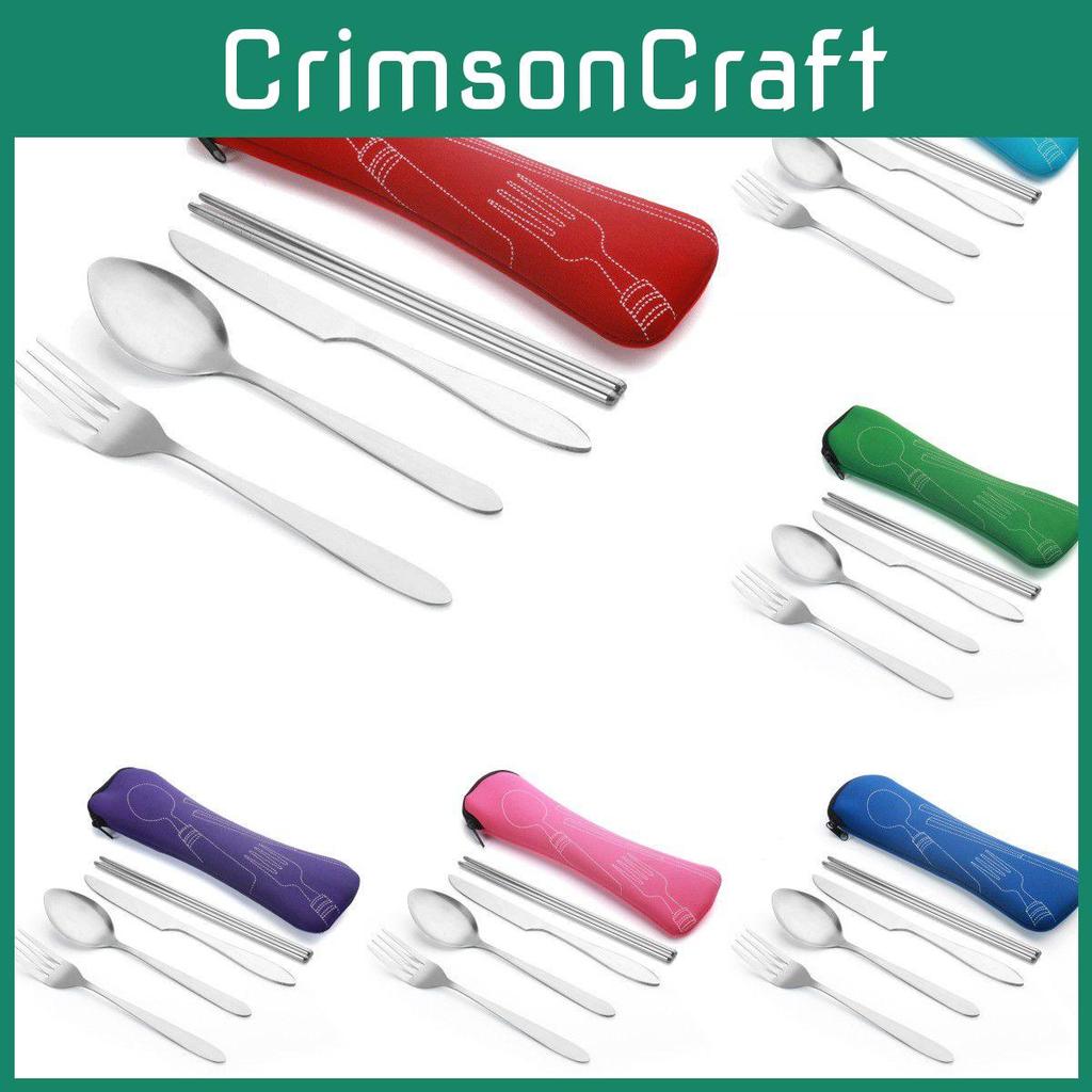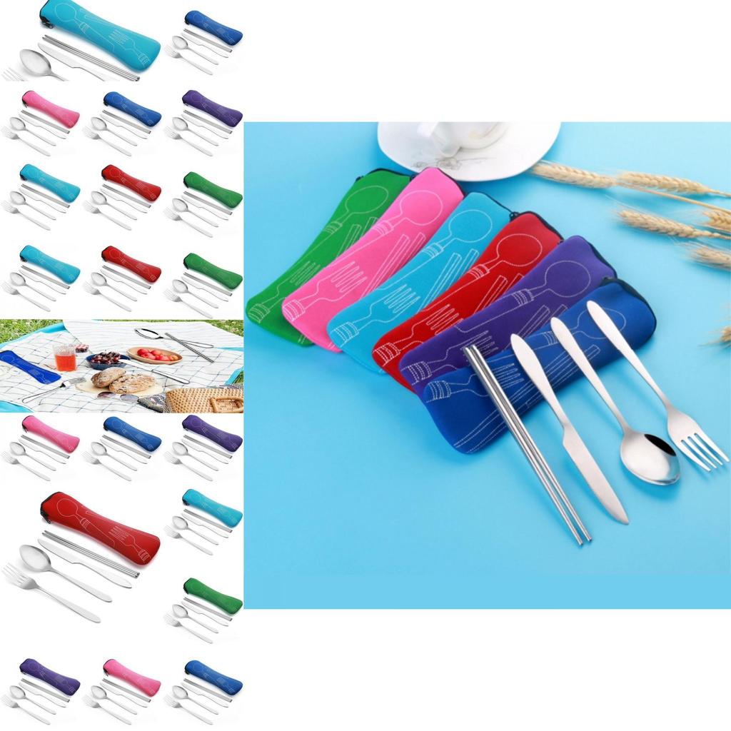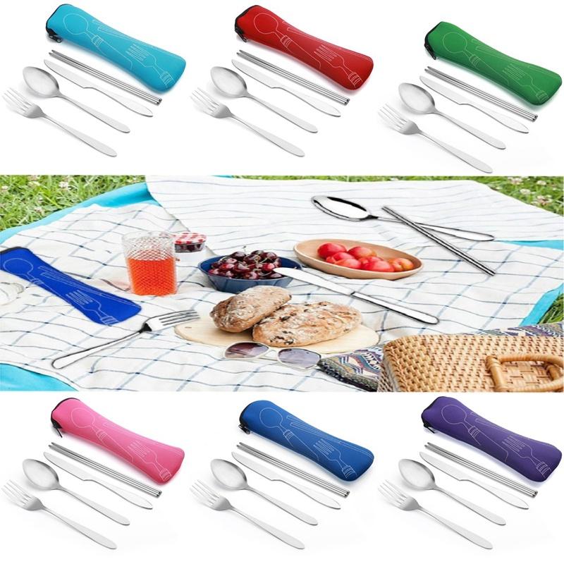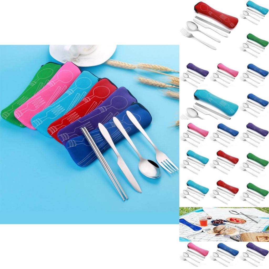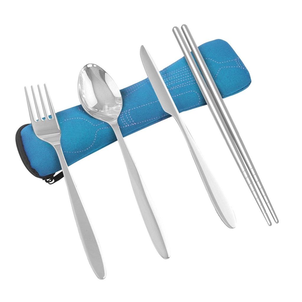 Набор из 4 предметов: стальная нержавеющая вилка, ложка, палочки для еды, дорожный походный набор столовых приборов, подарочный набор
