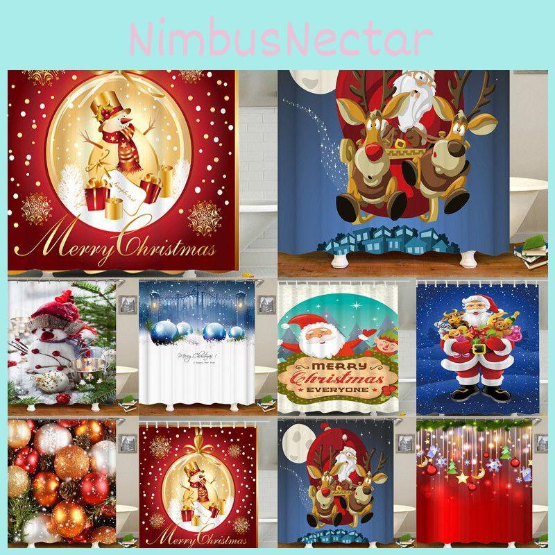 Яркая водонепроницаемая рождественская шторка для душа с Санта-Клаусом и снеговиком для яркого праздничного декора