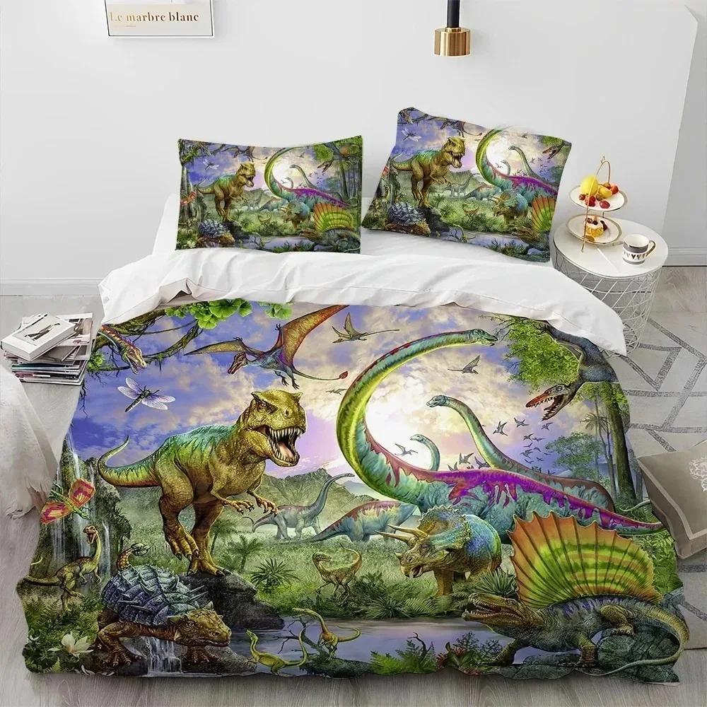 Комплект постельного белья с 3D-иллюстрацией динозавра из мультфильма, пододеяльник, наволочка, комплект постельного белья Queen для мальчиков, подарок