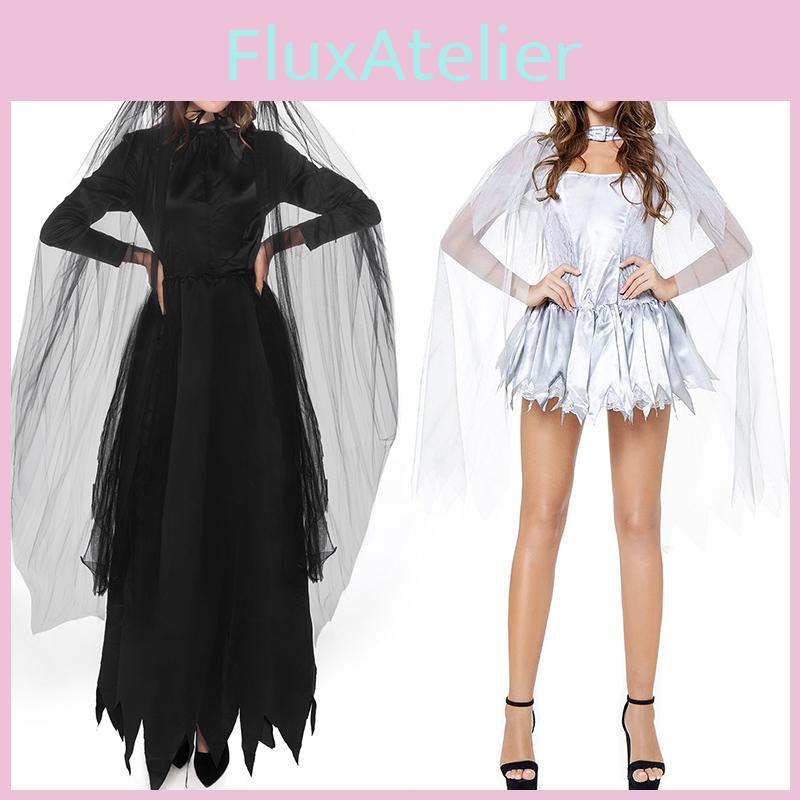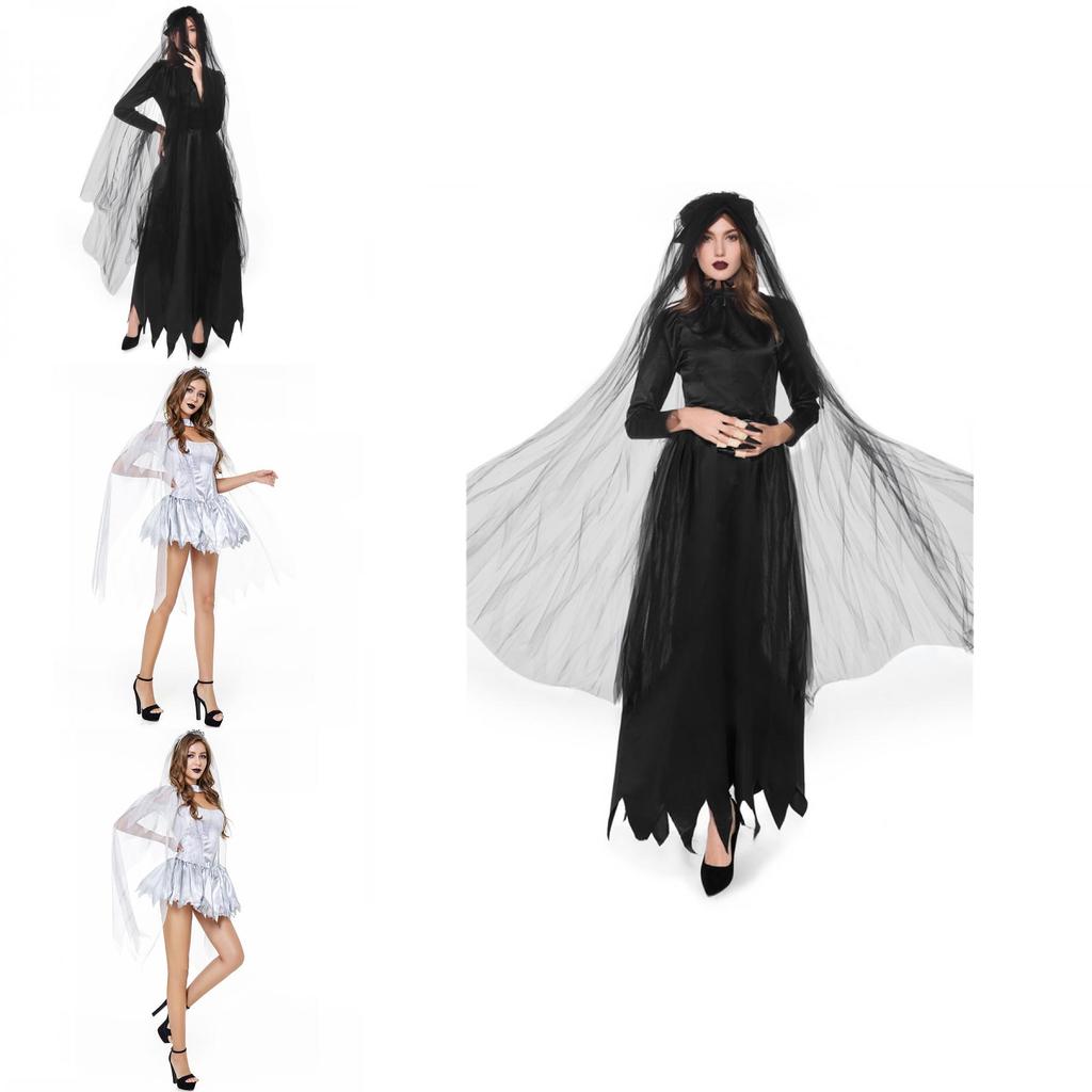 Страшный костюм невесты-призрака на Хэллоуин с потрясающей фатой, идеально подходящий для косплей-мероприятий