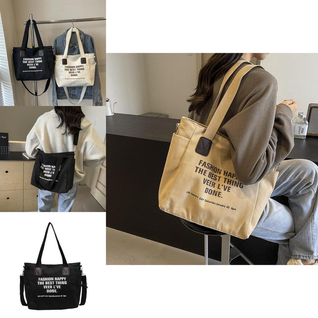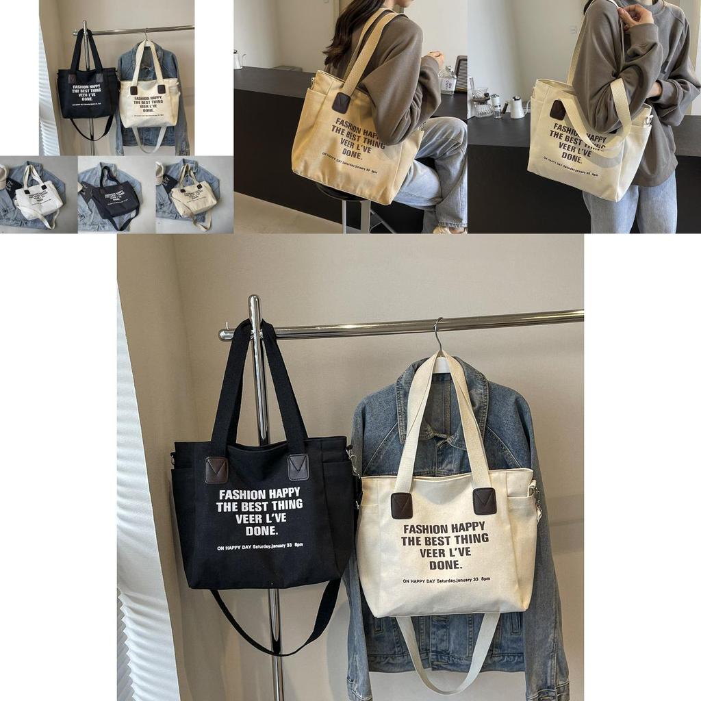 Вместительная новая повседневная сумка-тоут 2024 года, стильная холщовая сумка через плечо для студентов