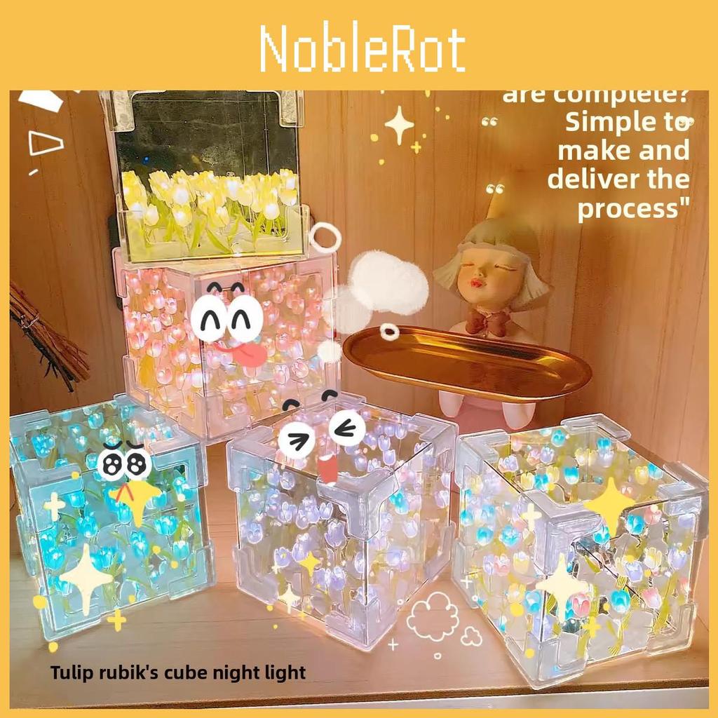 This modern minimalist night light features a 10x10x10cm geometric design with a 3D tulip flower sea motif, creating a calming atmosphere. Made of durable acrylic, it offers vibrant color options including blue, purple, and candy-colored blooms, powered by built-in batteries. Ideal for decorating bedrooms, gifting on holidays, or special occasions, it supports easy button switch operation and requires wipe-clean maintenance for long-lasting use.