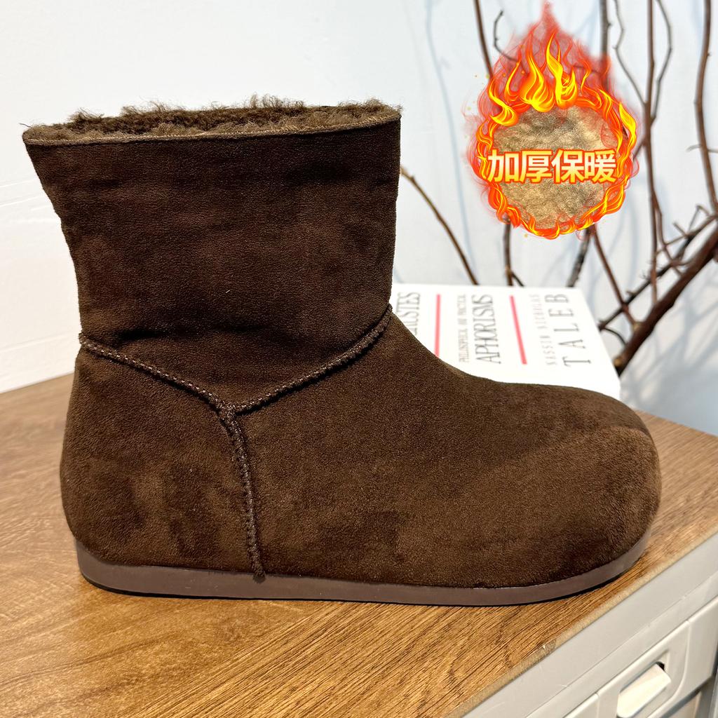 Ретро кожаные с толстой подошвой женские снегоступы 2025 зима новинка верхняя одежда бархатные нескользящие термо хлопковые сапоги