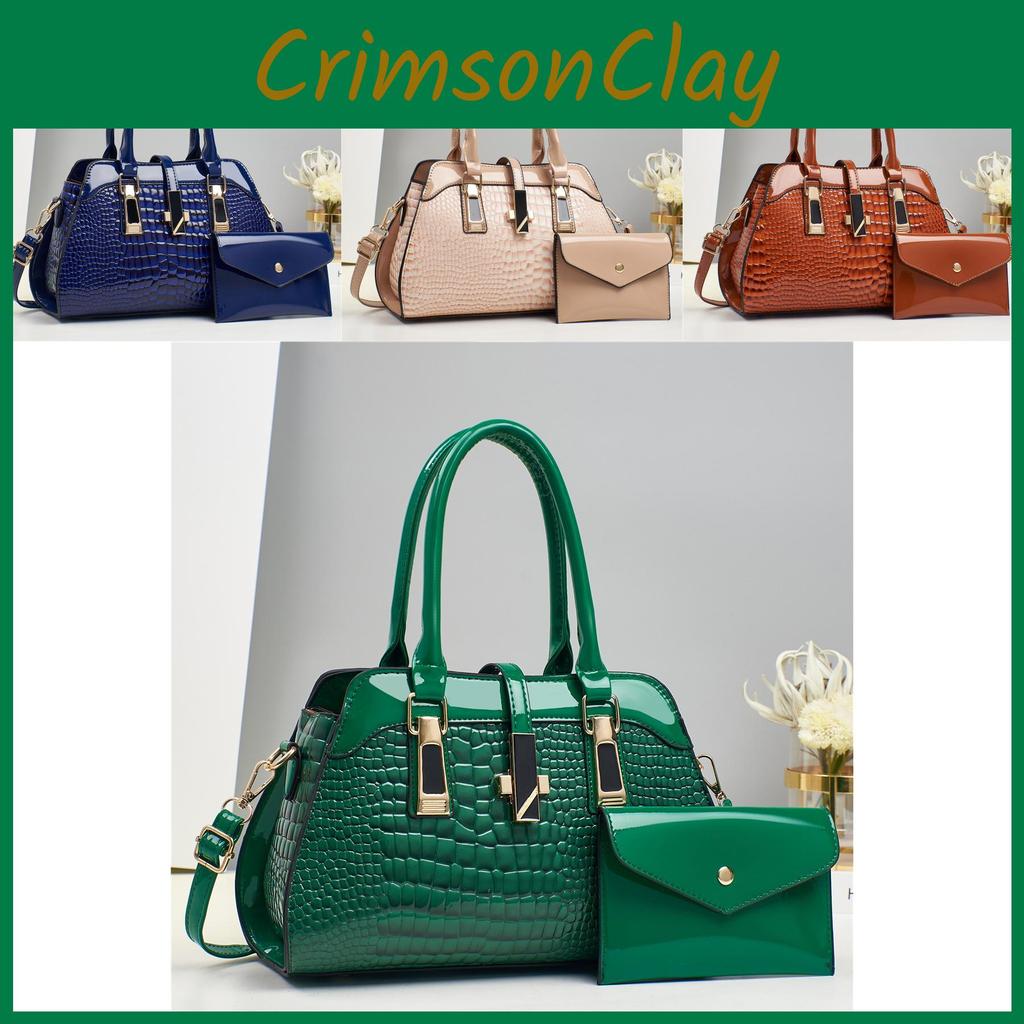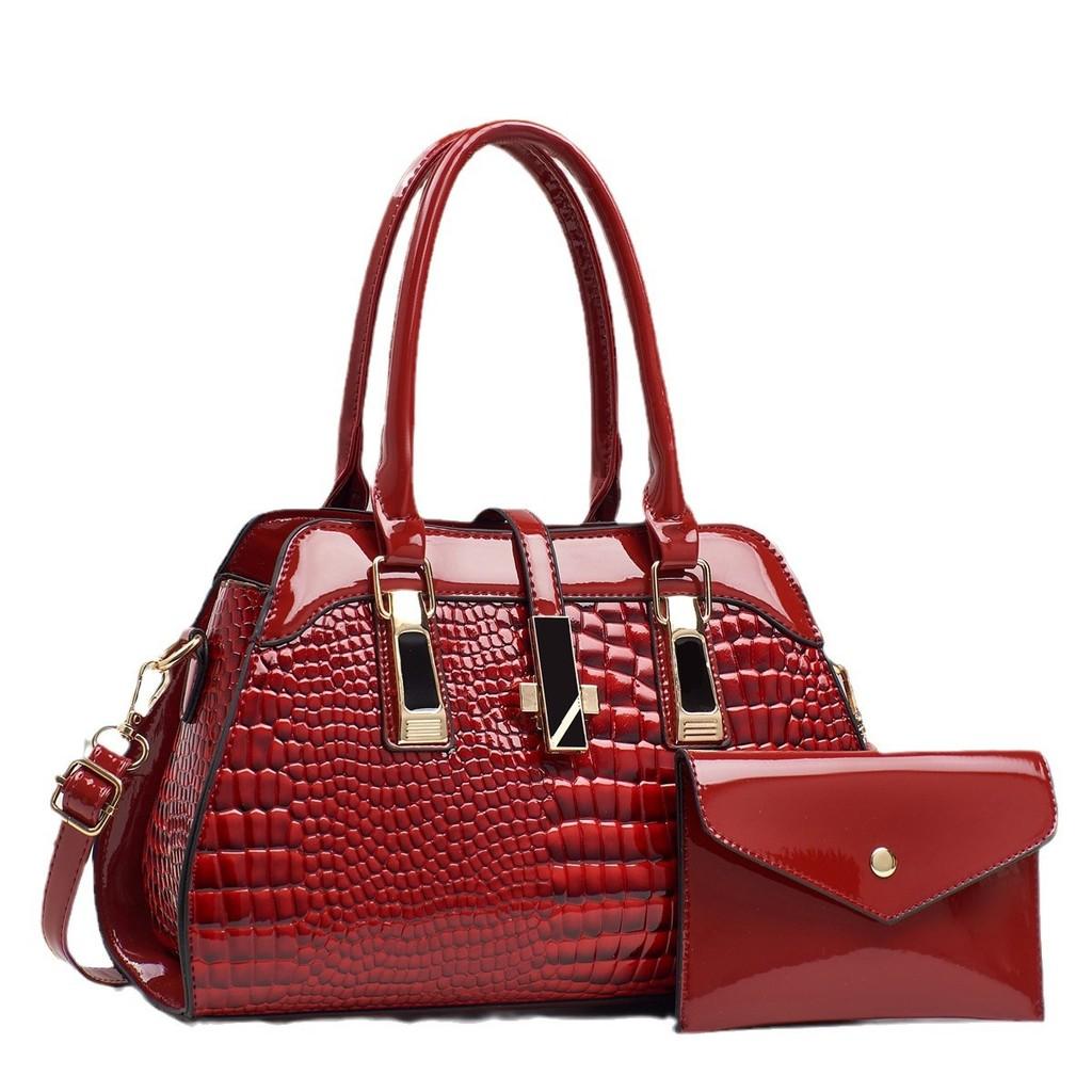 Стильная вместительная сумка из ПУ с тиснением под крокодила, с блестящей отделкой и универсальных цветов