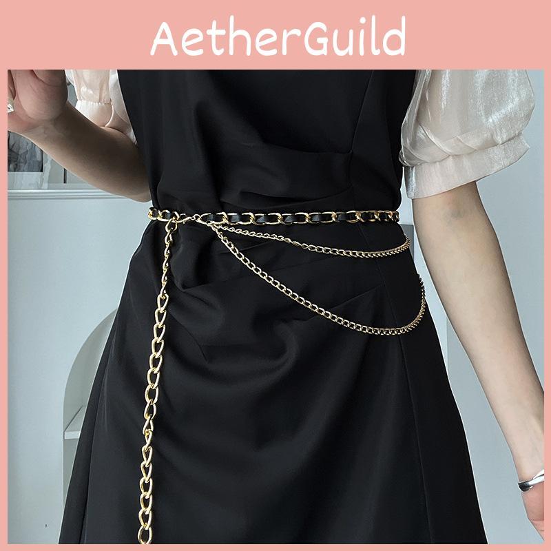 Шикарная плетеная металлическая поясная цепочка для женских платьев и нарядов в стильном черно-белом цвете