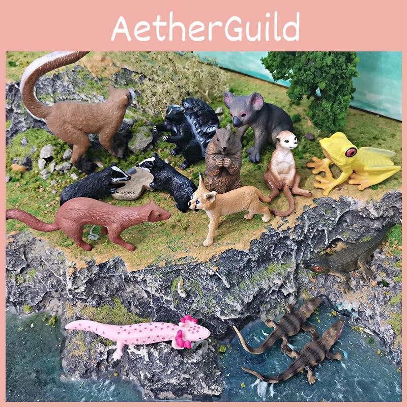 Коллекция реалистичных пластиковых моделей лесных животных, включающая милых статичных мышей, лягушек, крокодилов, коал и скунсов
