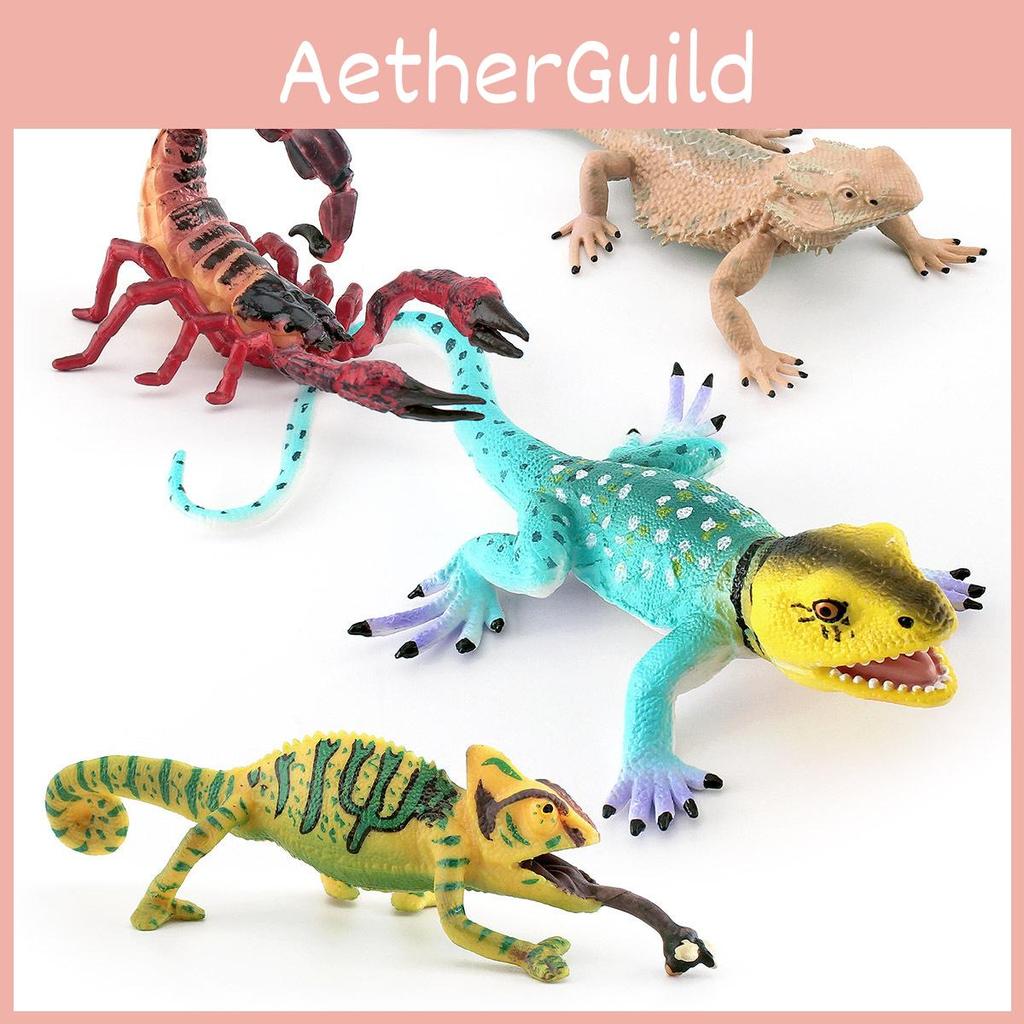Реалистичные модели амфибий из ПВХ: хамелеон, скорпион, ящерица и бородатая агама. Коллекционные модели, идеально подходящие для украшения и подарков.