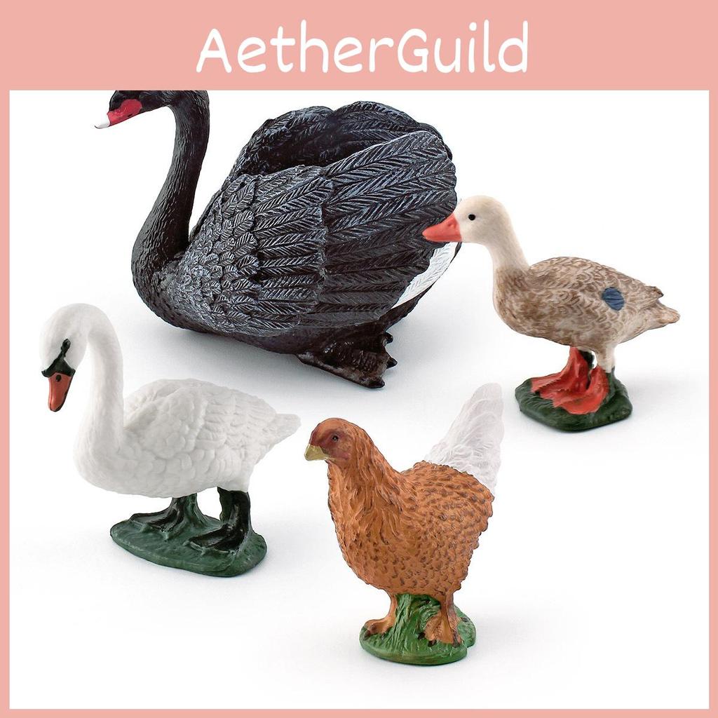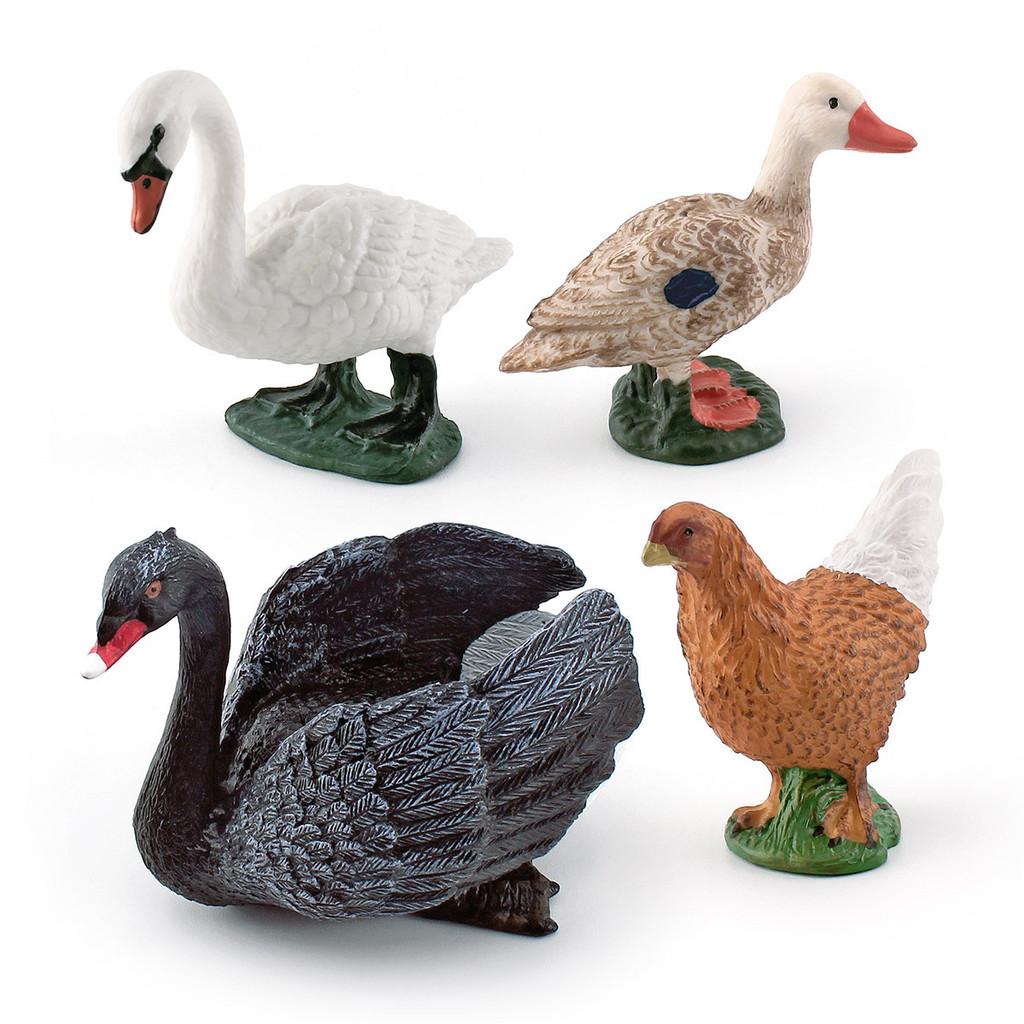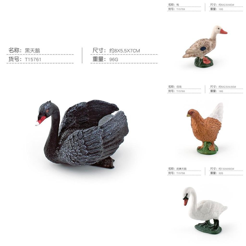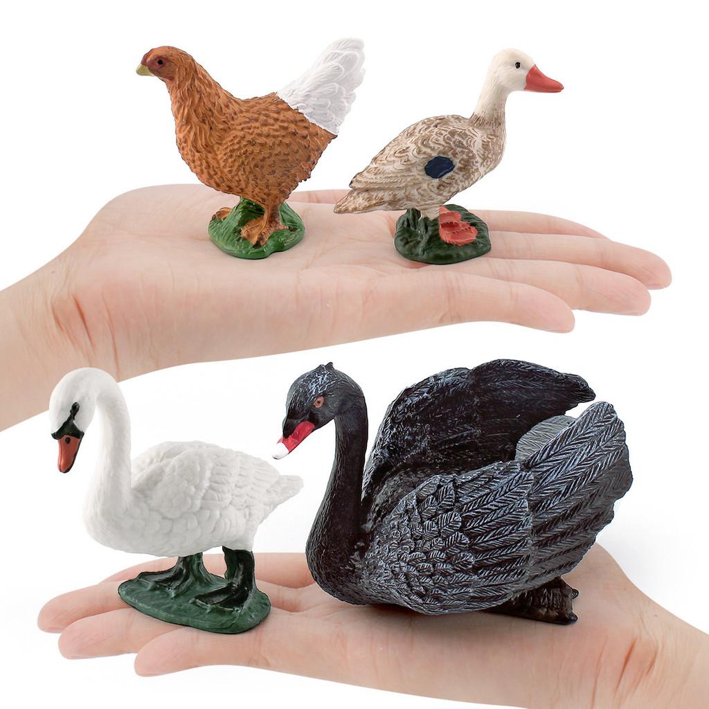Реалистичная пластиковая статуэтка фермерского животного включает модели черного лебедя, курицы, утки и гуся