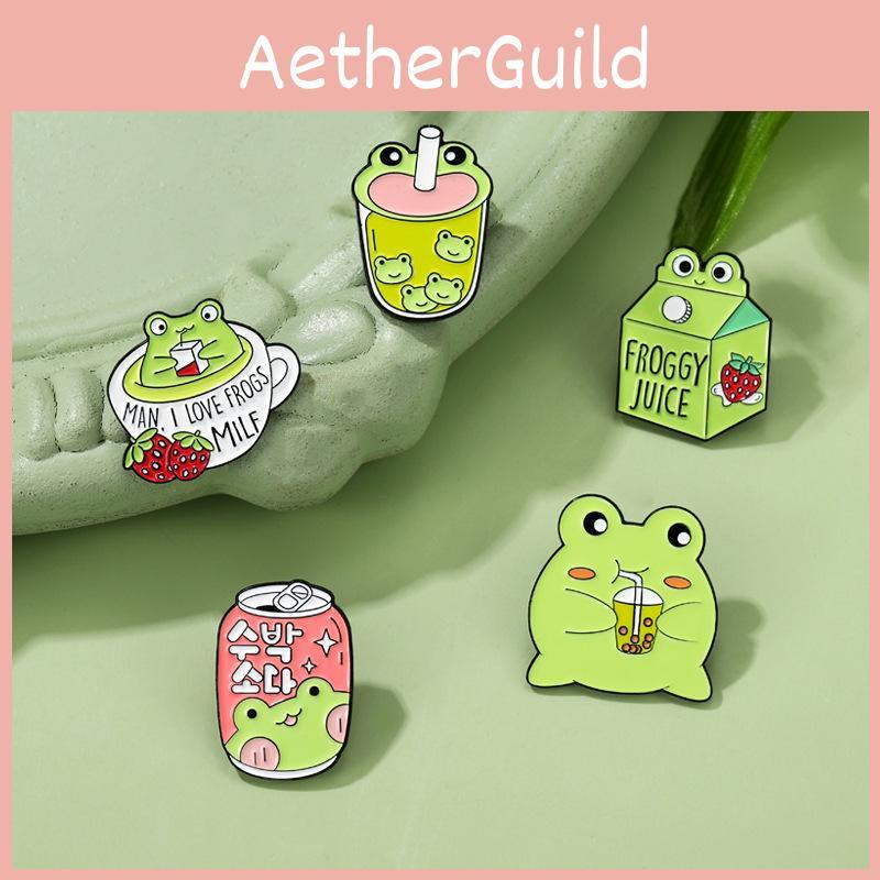 Adorable Cartoon Frog Milk Tea Cute Animal Brooch Alloy Pin For Everyone Stylish Accessory