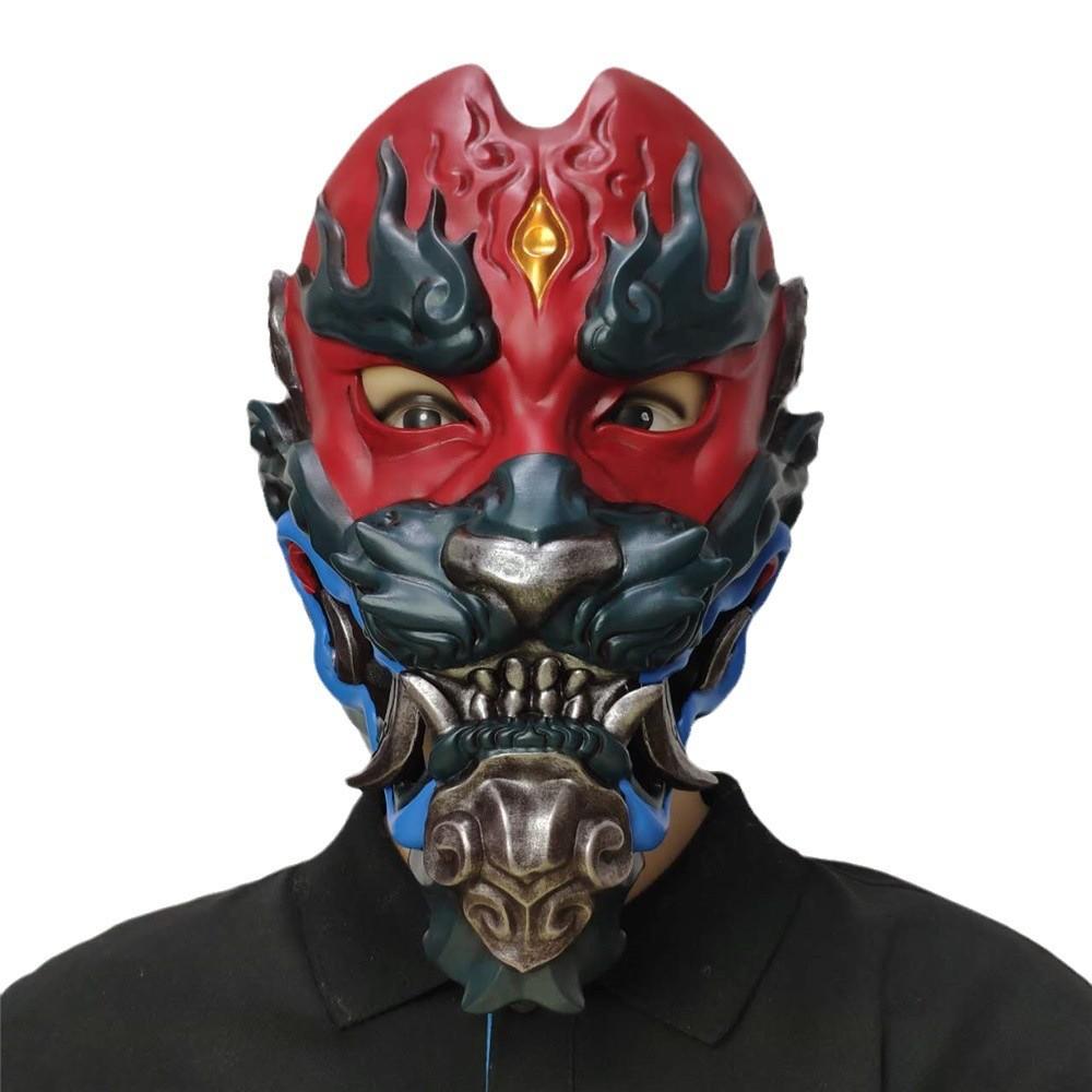 This horror-themed mask is crafted from durable resin,Designed to resemble a vintage Japanese Noh face, it features intricate detailing perfect for costume parties, haunted houses, or theatrical performances. The mask is suitable for various festivals, including Halloween and costume events, providing an authentic scary aesthetic. Wipe with a damp cloth to maintain its appearance.