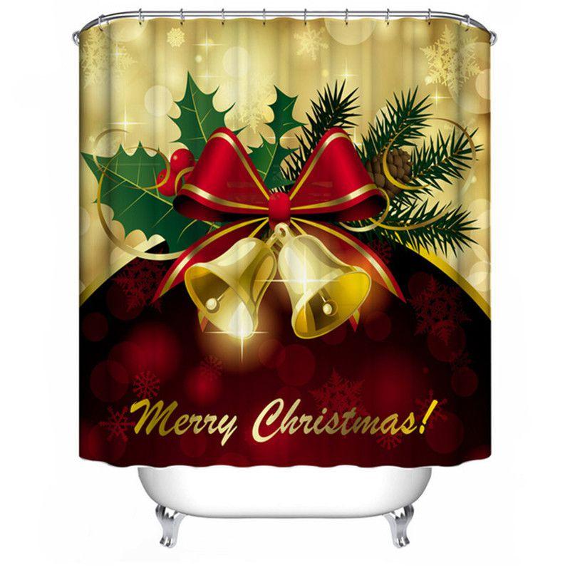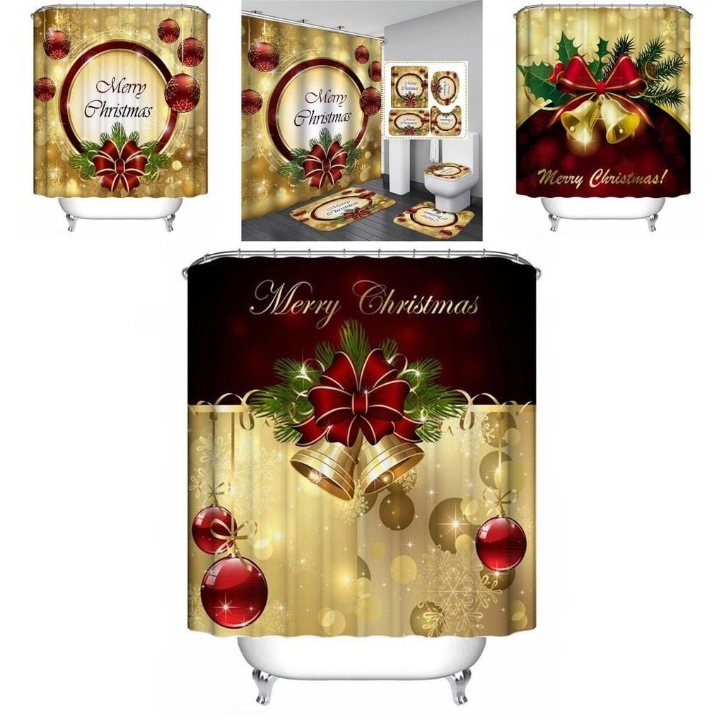 Высококачественный водонепроницаемый рождественский набор для ванной комнаты со шторкой для душа и ковриками