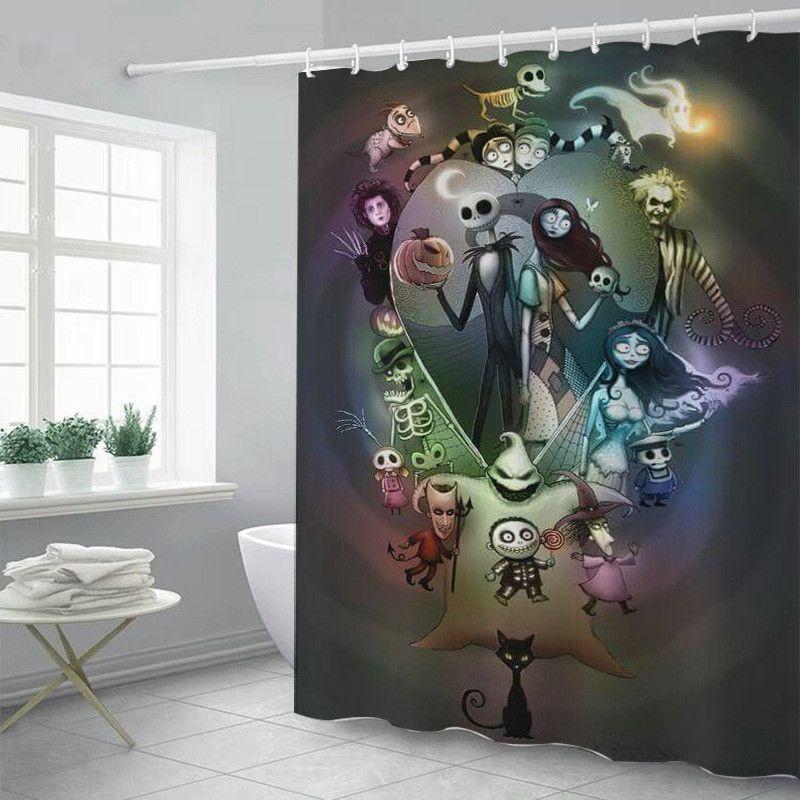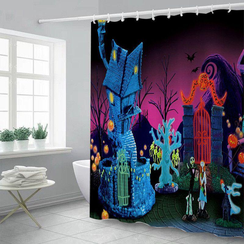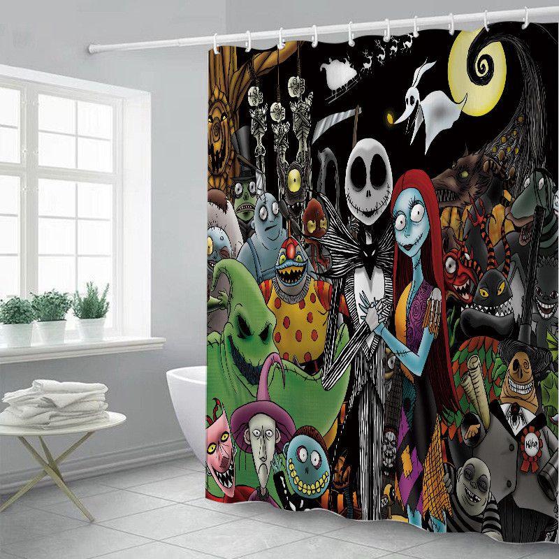 Яркая и красочная шторка для душа «Кошмар перед Рождеством» с крючками для ванных комнат