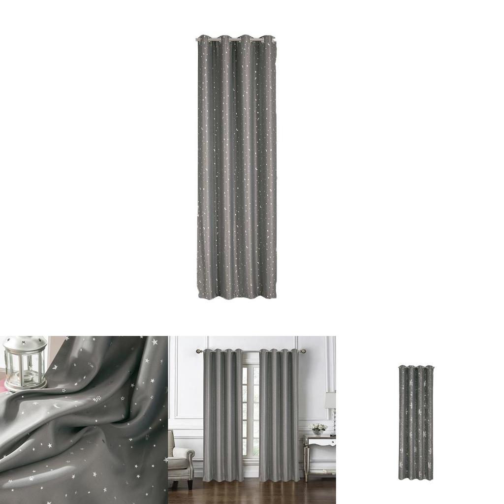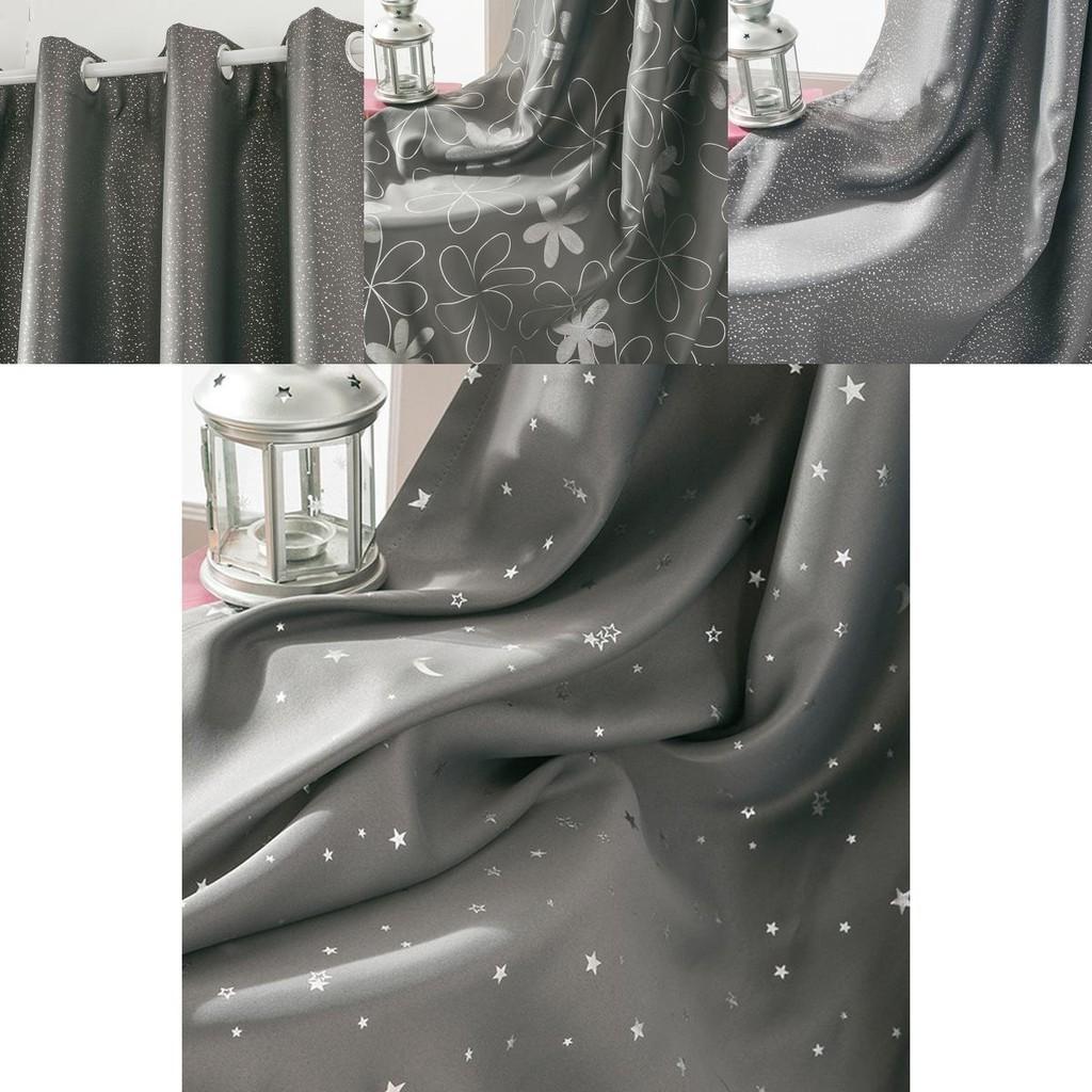 Красивые серые шторы со звездами, луной, цветами и точками, предлагающие современную функцию затемнения